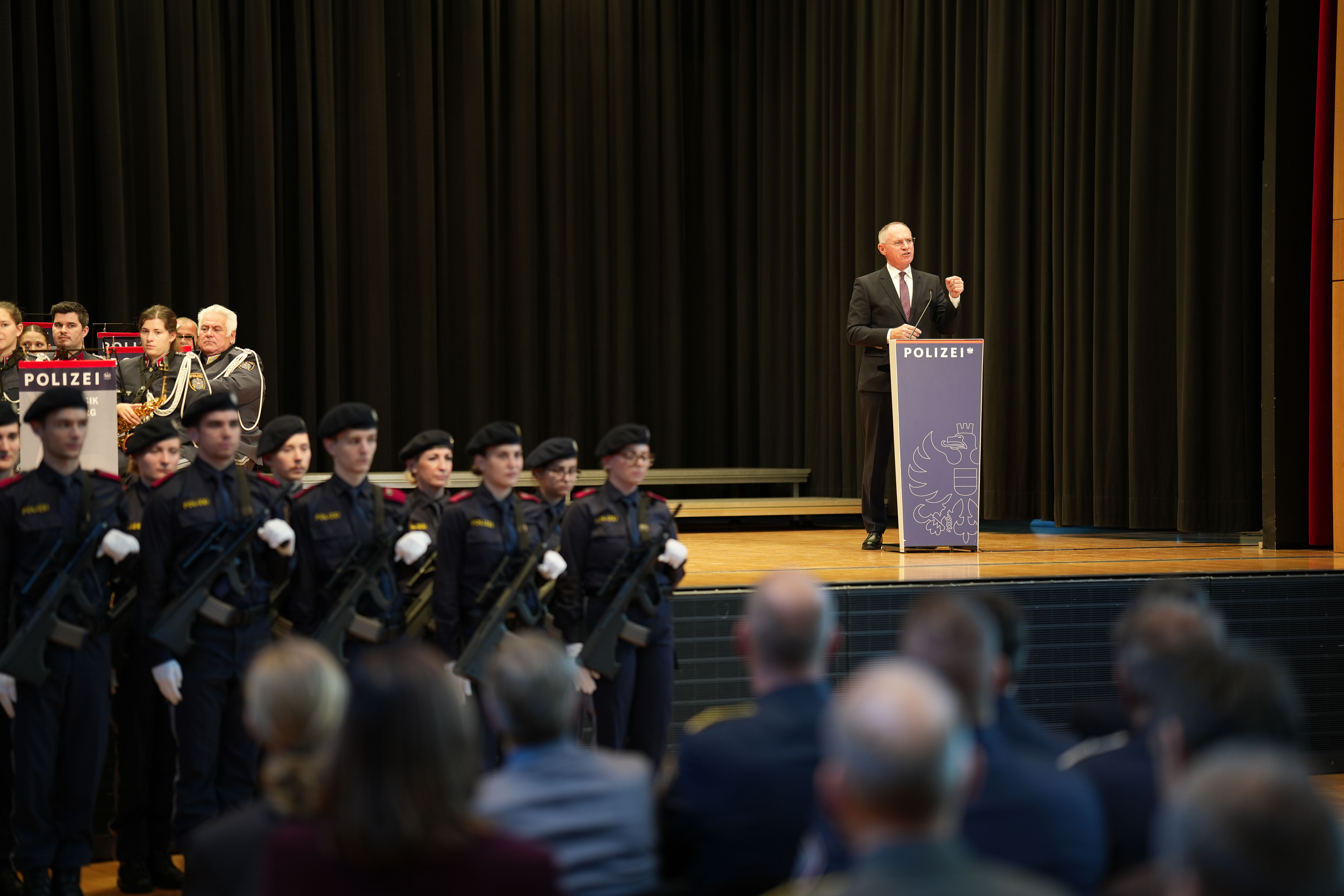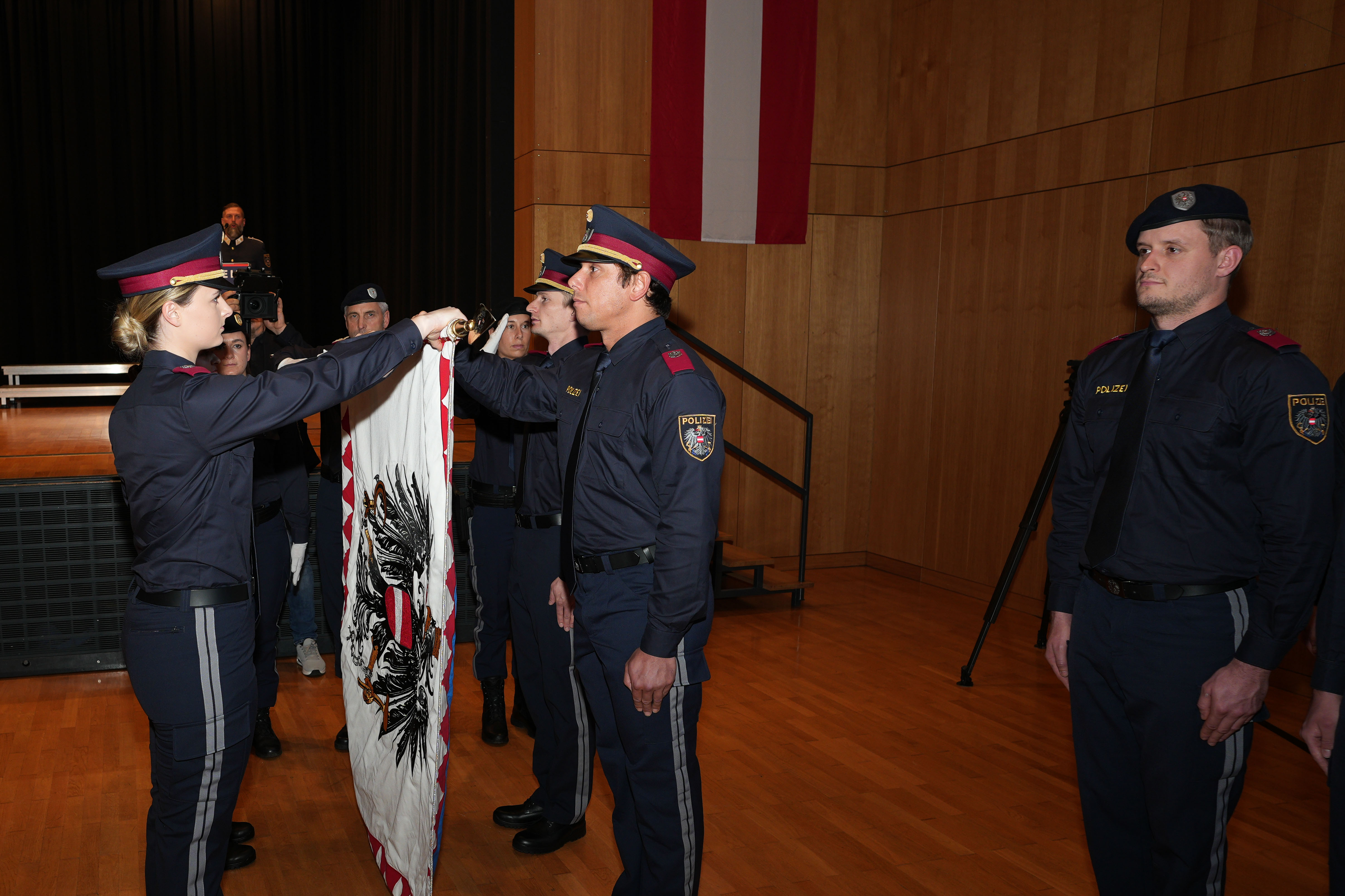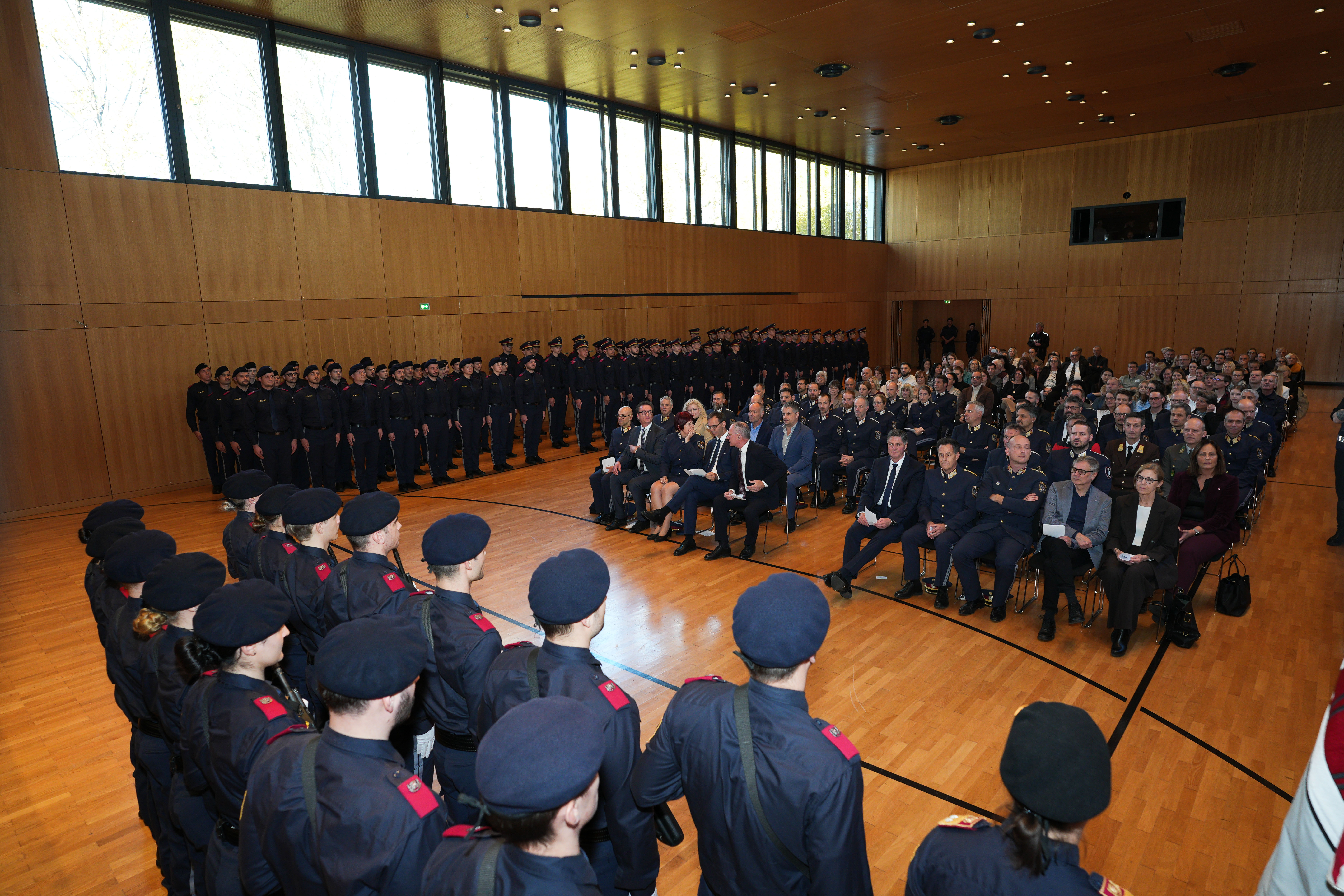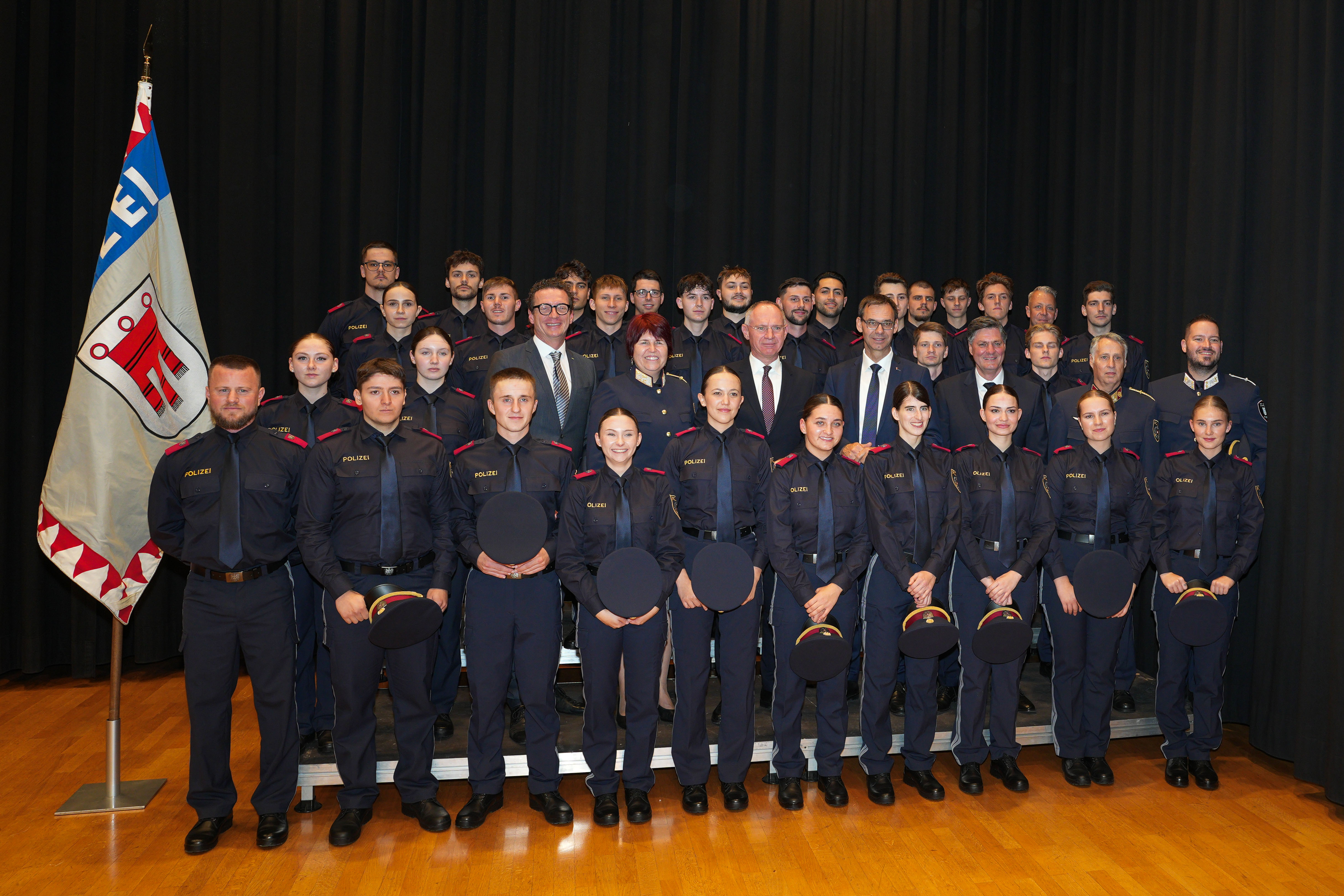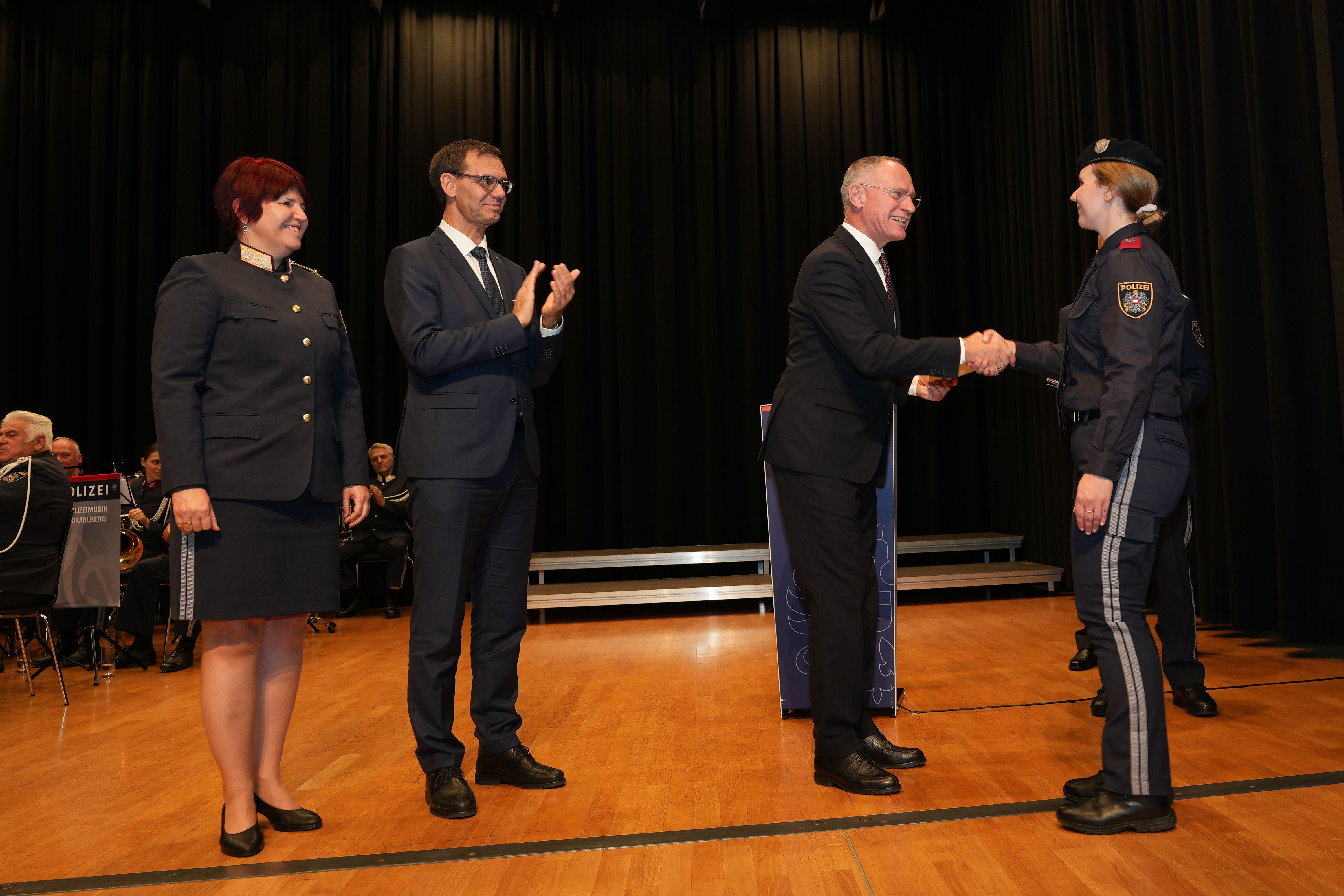 26 Absolventinnen und Absolventen der Polizeigrundausbildung sowie vier Bedienstete der Stadtpolizei Dornbirn und ein Bediensteter der Stadtpolizei Feldkirch erhielten im feierlichen Rahmen ihre Dekrete. Im Rahmen der Feierlichkeiten legten außerdem jene rund 60 Bediensteten, die ihre Grundausbildung im September dieses Jahres begonnen haben, ihr Gelöbnis ab. Für die musikalische Umrahmung des Festakts sorgte die Polizeimusik Vorarlberg.