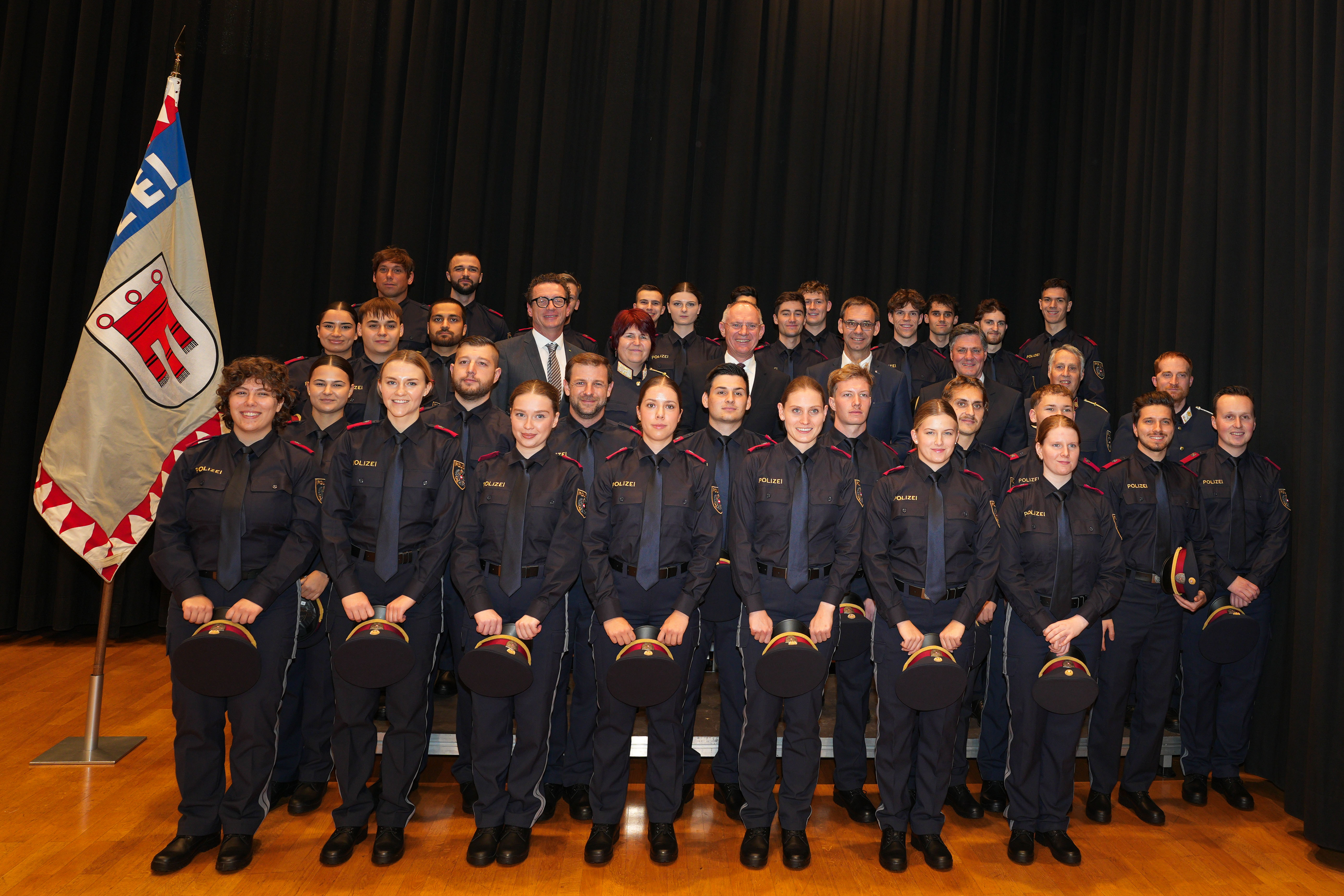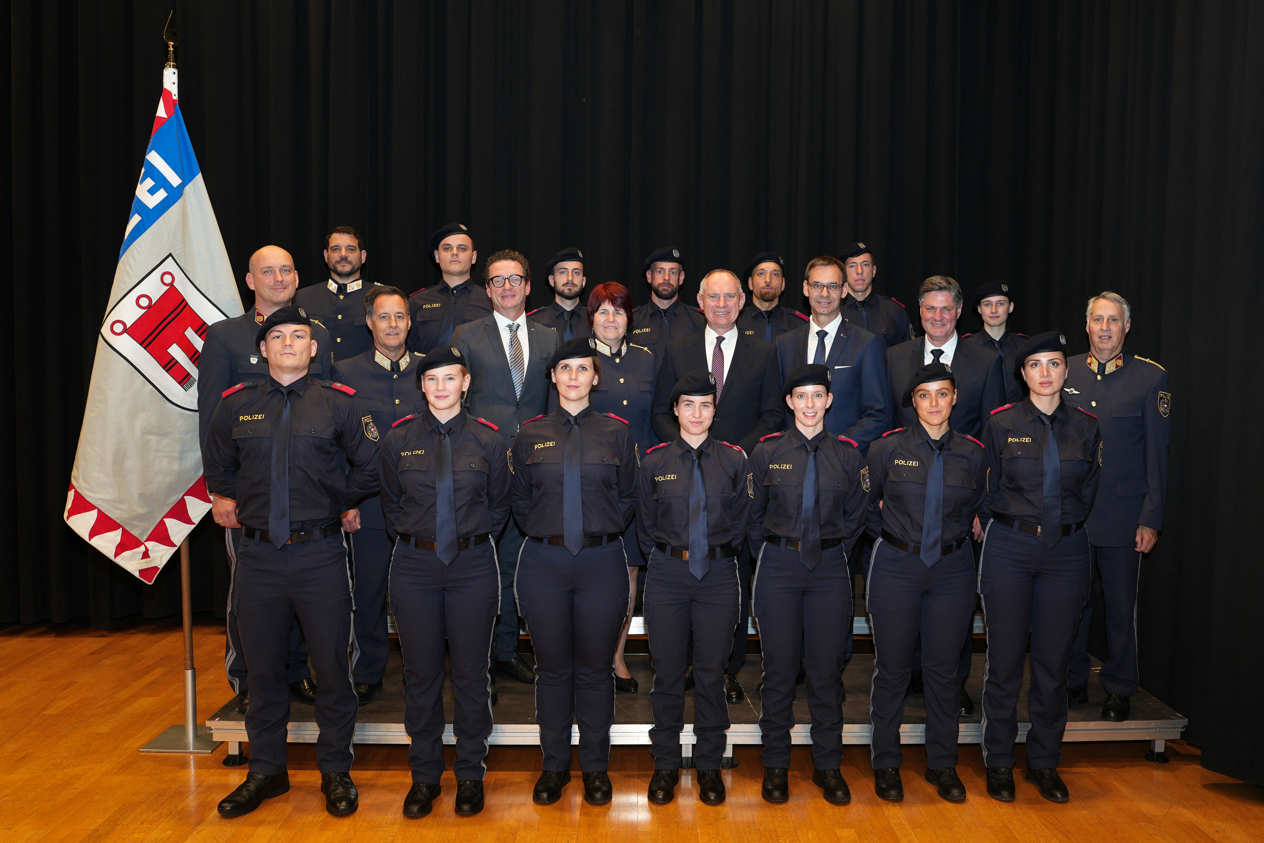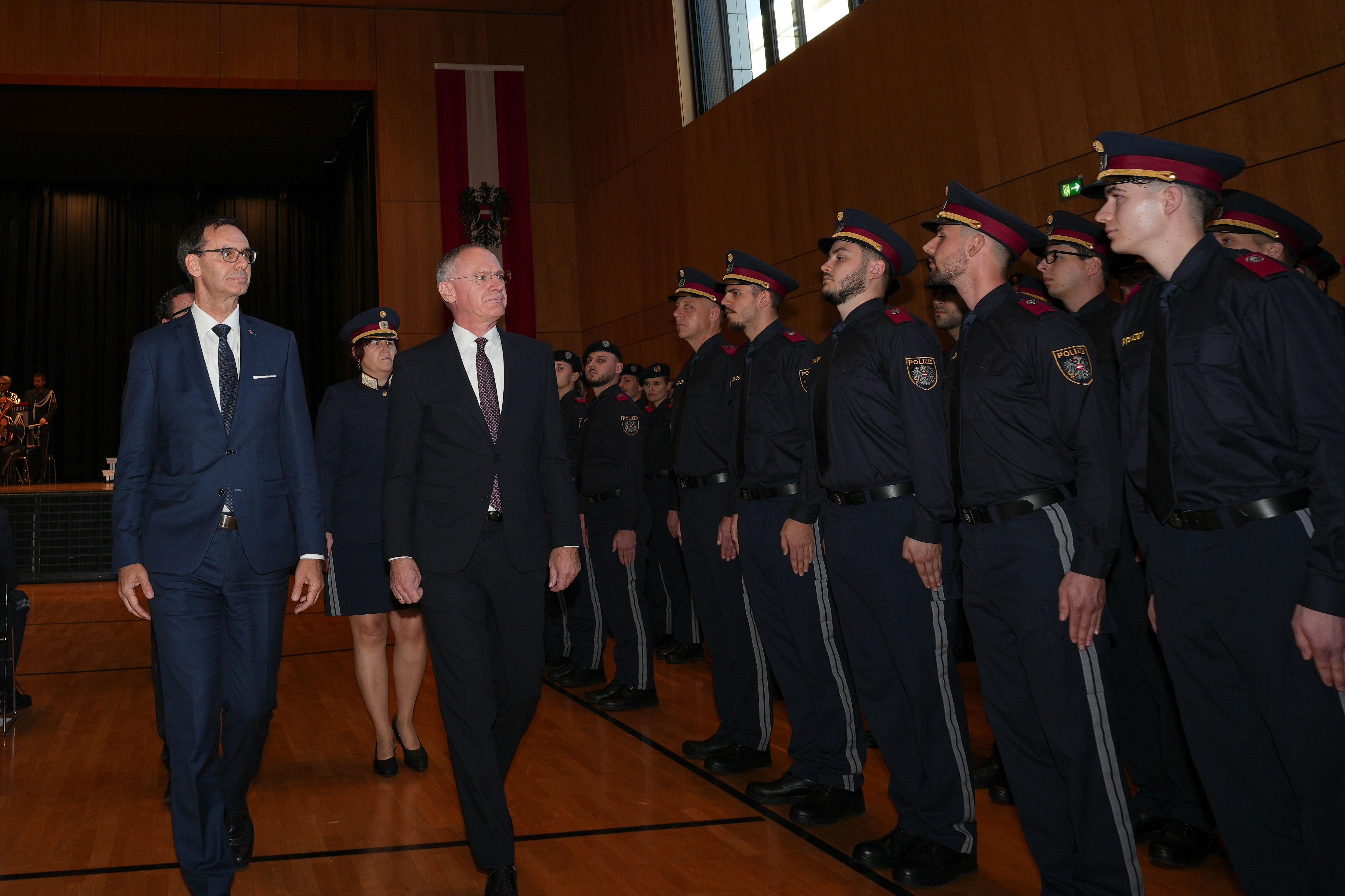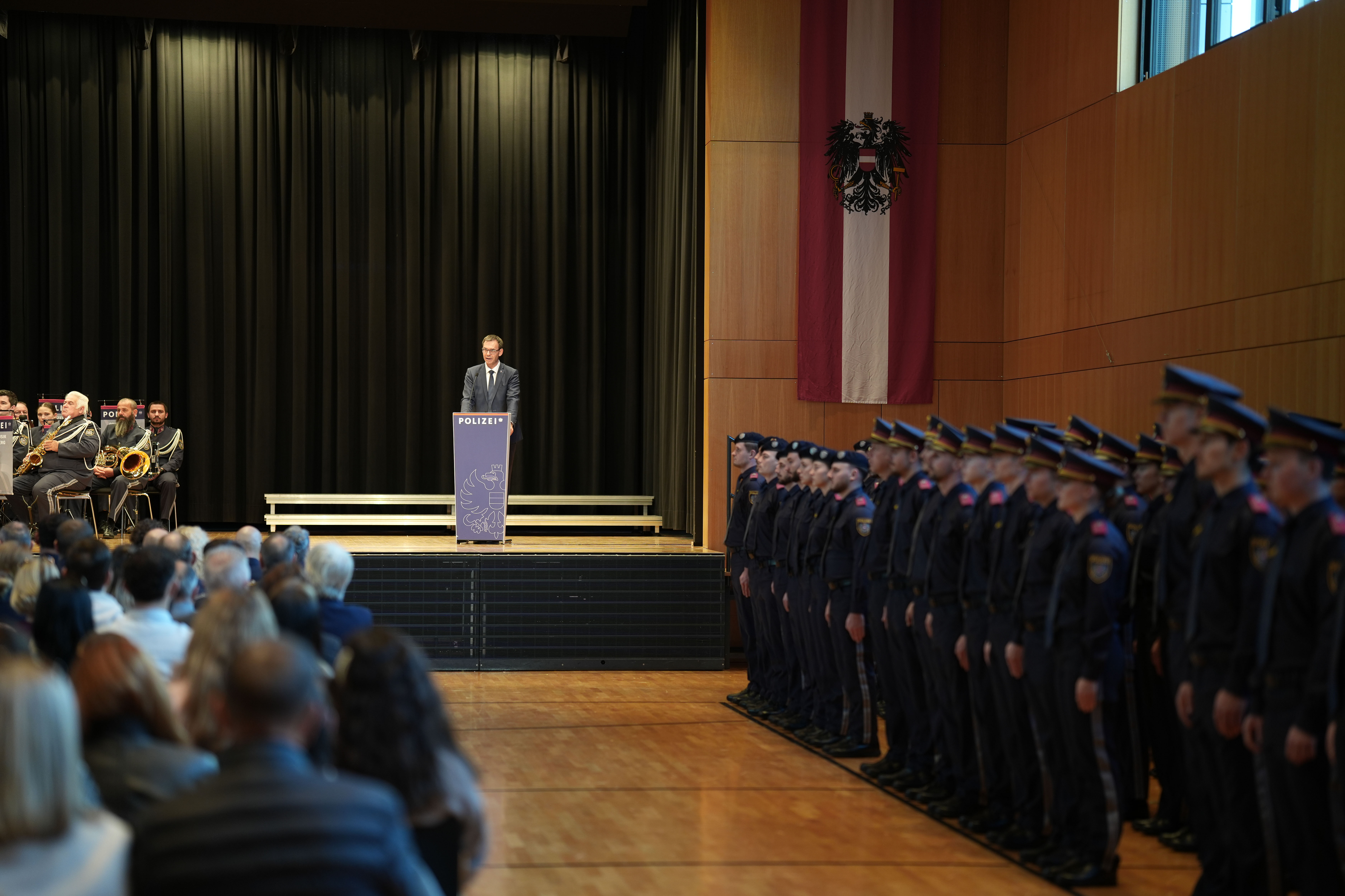 26 Absolventinnen und Absolventen der Polizeigrundausbildung sowie vier Bedienstete der Stadtpolizei Dornbirn und ein Bediensteter der Stadtpolizei Feldkirch erhielten im feierlichen Rahmen ihre Dekrete. Im Rahmen der Feierlichkeiten legten außerdem jene rund 60 Bediensteten, die ihre Grundausbildung im September dieses Jahres begonnen haben, ihr Gelöbnis ab. Für die musikalische Umrahmung des Festakts sorgte die Polizeimusik Vorarlberg.