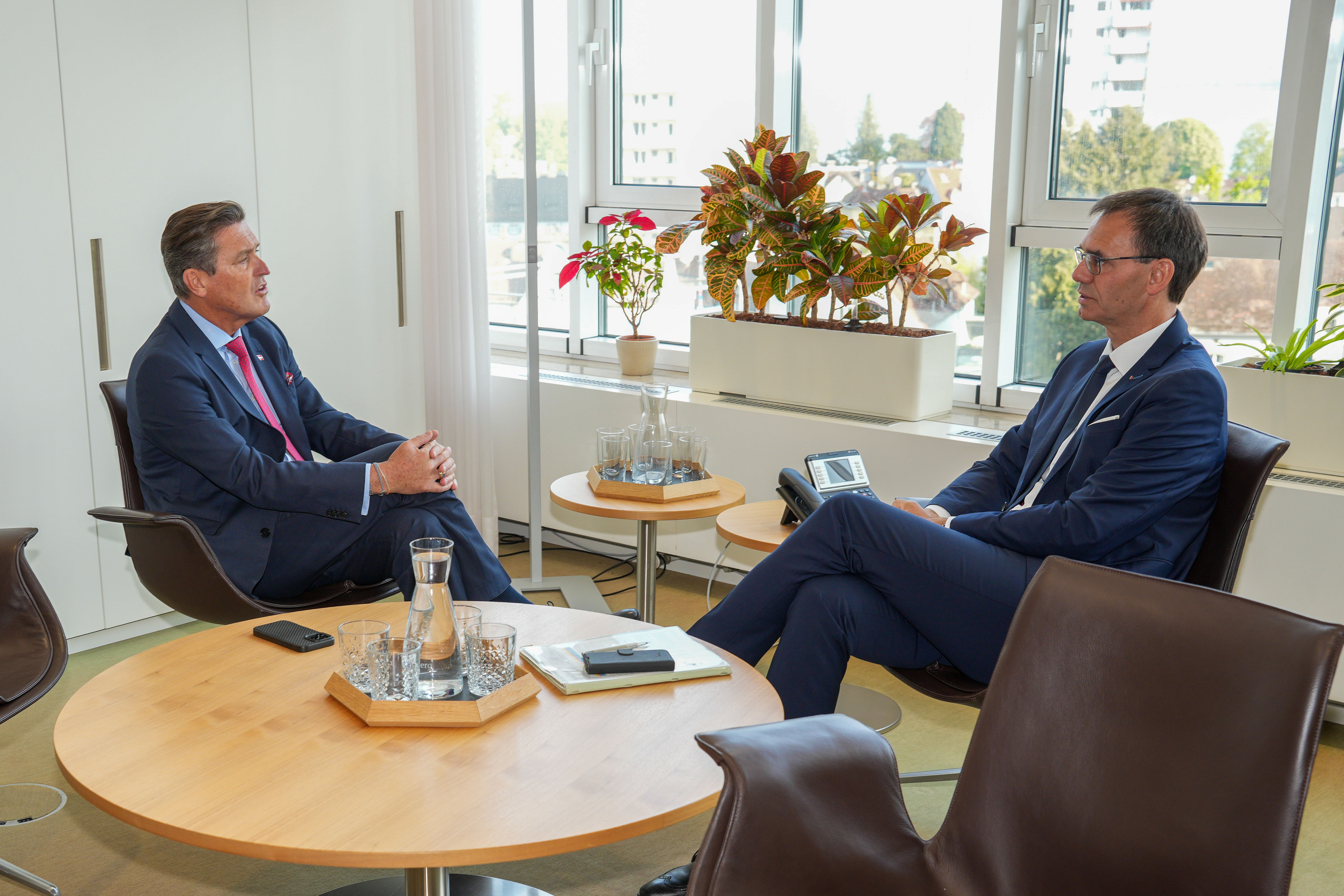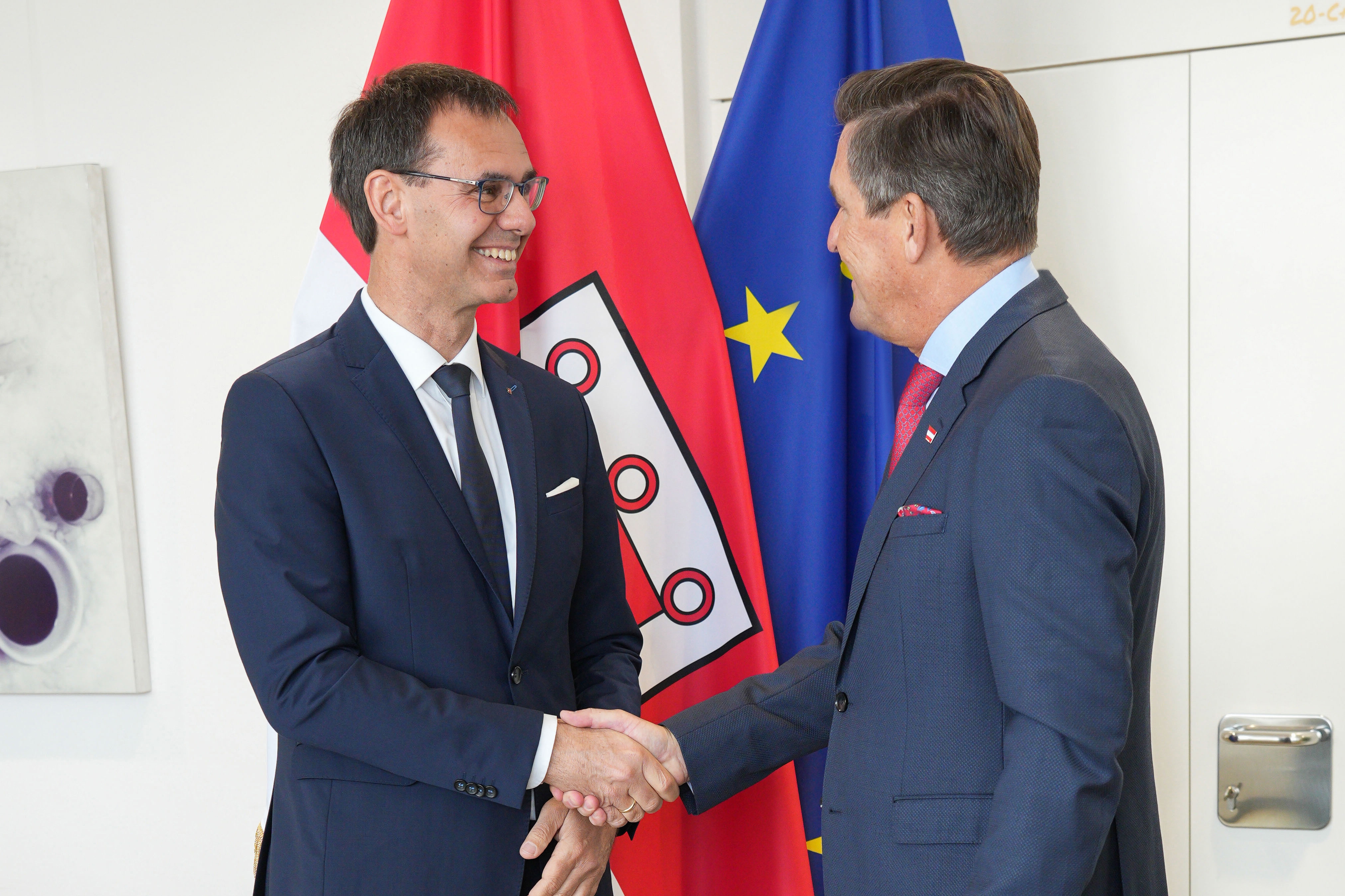 Bregenz (VLK) – Der heutige (28. April) Besuch von Mobilitätsminister Peter Hanke in Vorarlberg startete mit einem Gespräch bei Landeshauptmann Markus Wallner. Nach dem Termin verkündeten beide gemeinsam: „Die nächsten Prüfungsschritte für die Bodenseeschnellstraße S 18 stehen an. Das Vorprojekt steht bei der Asfinag vor der Einreichung.“ In der anschließenden Runde gemeinsam mit Landesstatthalter Christof Bitschi, Wirtschaftslandesrat Marco Tittler und ExpertInnen aus der Landesverwaltung wurden neben der S 18 auch weitere wichtige Verkehrs- und Infrastrukturprojekte besprochen.