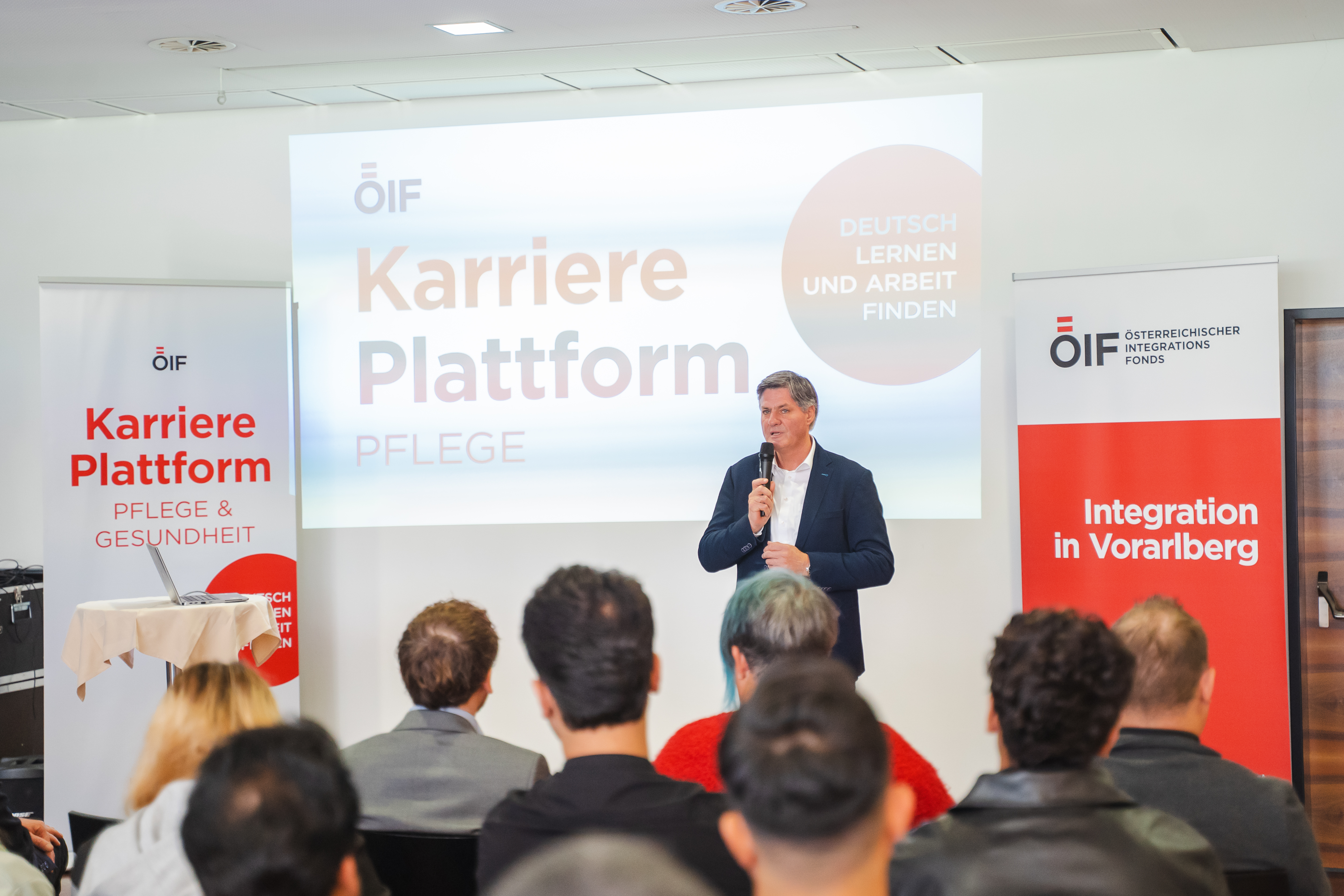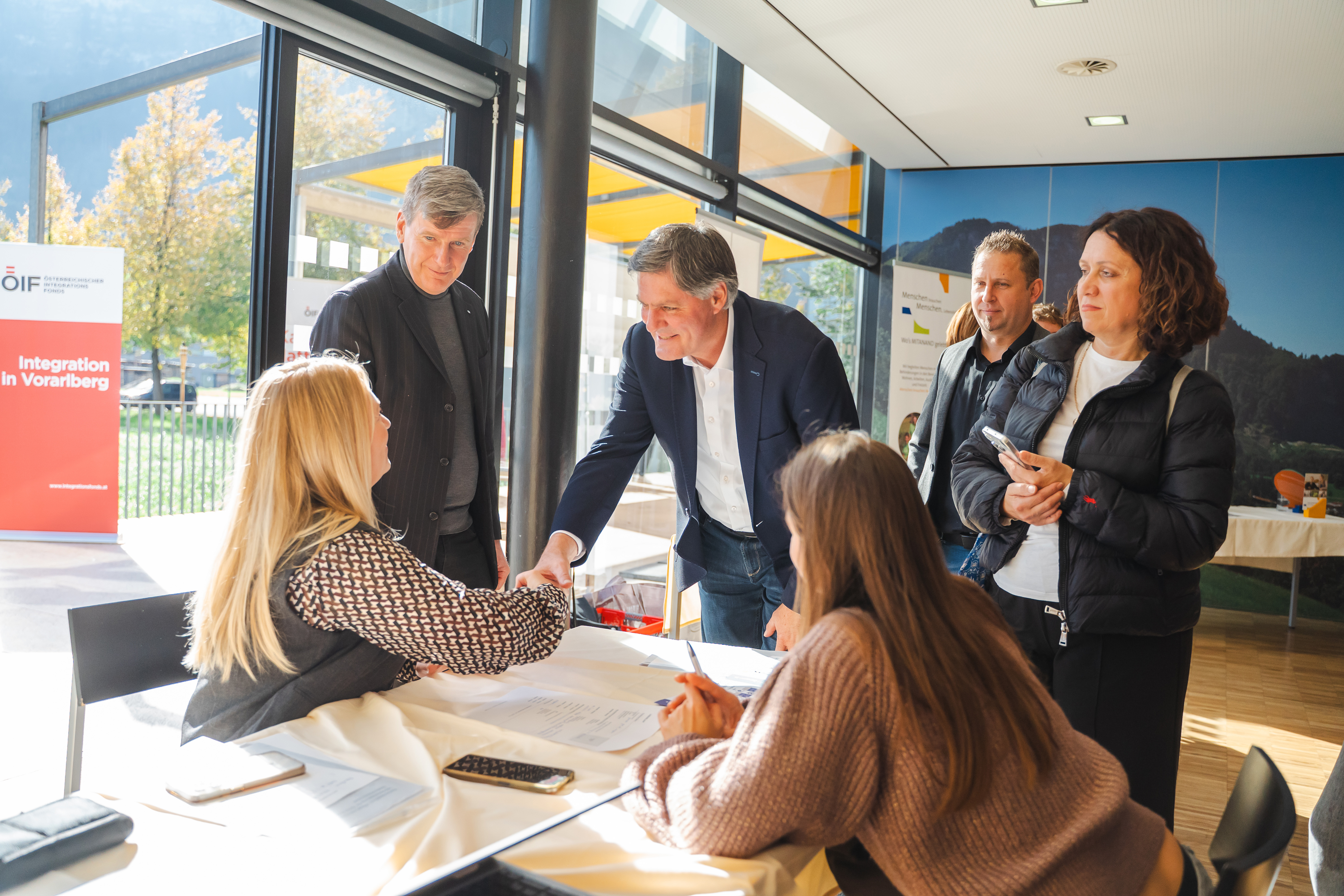 Dornbirn (VLK) – Bei der Karriereplattform des Österreichischen Integrationsfonds (ÖIF) zum Schwerpunkt Gesundheits- und Pflegeberufe heute (Mittwoch, 8. Oktober 2025) in Dornbirn nützten mehr als 120 Teilnehmende aus ÖIF-Deutschkursen die Chance, direkt mit Arbeitgebern und Ausbildungseinrichtungen in Kontakt zu kommen. Die Veranstaltung sei ein wertvoller Beitrag in Sachen Integration, zeigte sich Landesrat Daniel Allgäuer erfreut über das große Interesse. „Integration gelingt besonders gut dort, wo Menschen Arbeit finden und gebraucht werden – und genau das ist in der Pflege der Fall. Deshalb ist es mir ein großes Anliegen, dass wir Zuwanderinnen und Zuwanderer bestmöglich beim beruflichen Einstieg in diesem Bereich unterstützen“, sagte er.
