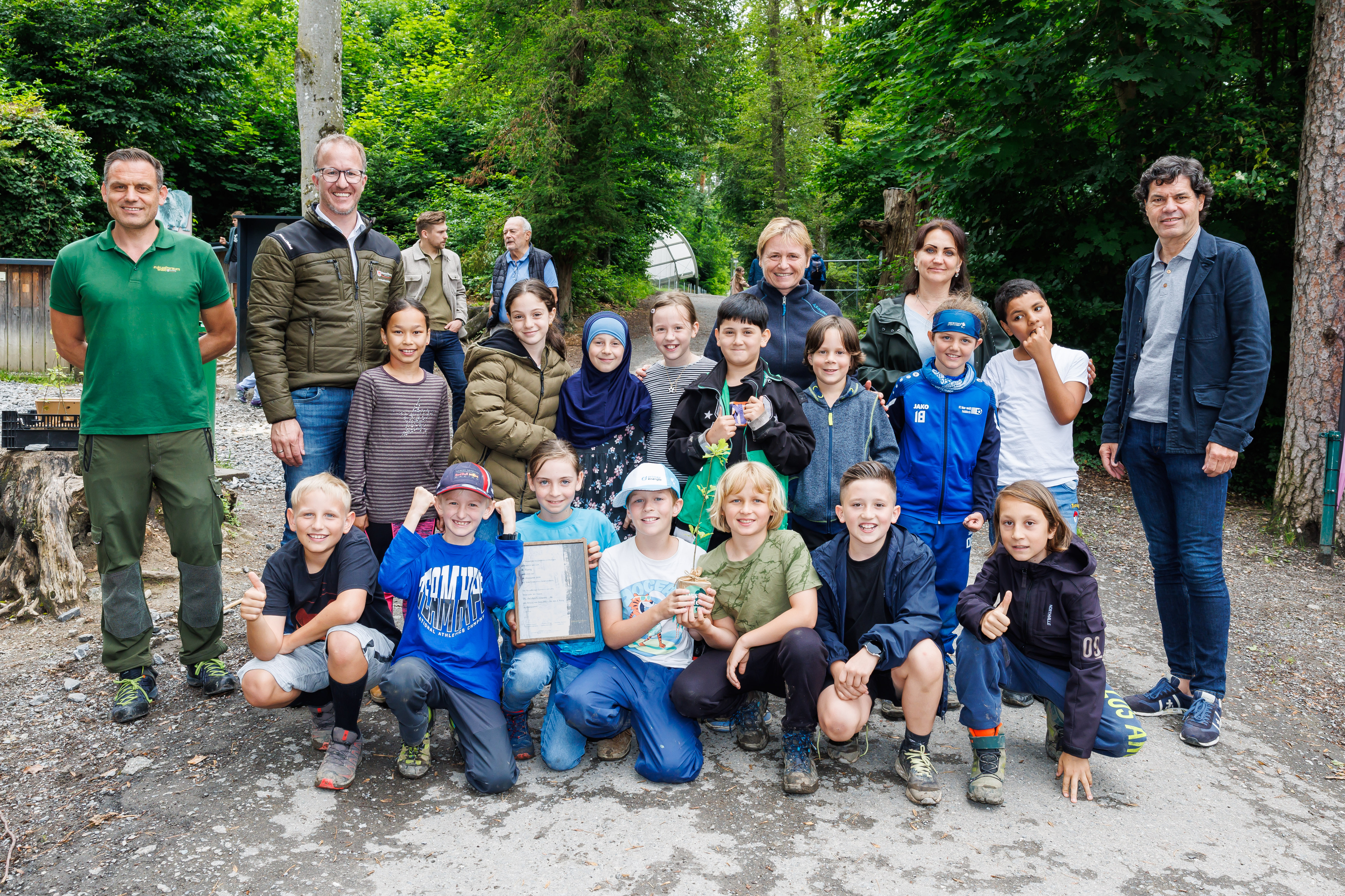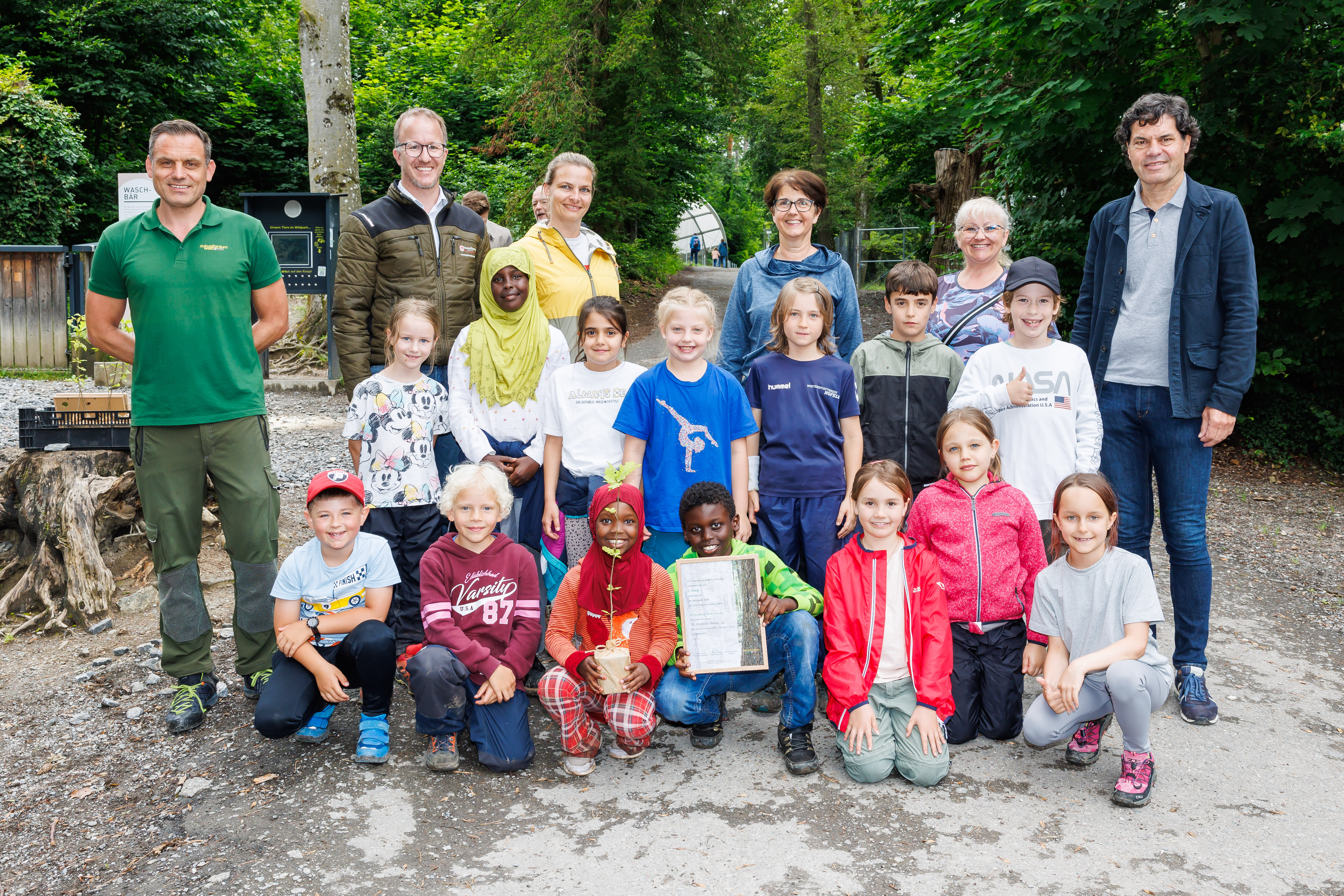 Umso mehr freute er sich über die Begeisterung und das große Wissen, das die SchülerInnen bei den Waldspielen am Ardetzenberg bewiesen. In neun verschiedenen Wettkämpfen mussten sie beispielsweise Blätter und Zweige erkennen, einen Baumstamm durchsägen oder über die Waldfunktionen diskutieren. Nach einem abwechslungsreichen Vormittag ging der Sieg an die 2c der Volksschule Oberau in Feldkirch-Gisingen, auf Rang zwei folgte die 3a der gleichen Schule und auf Rang drei die 2a der Mittelschule Höchst. Neben einer Urkunde bekamen alle teilnehmenden Schulklassen von Bürgermeister Manfred Rädler und Landesrat Gantner eine Eiche aus dem Landesforstgarten (Baum des Jahres) überreicht. Die SchülerInnen werden nächste Woche in die Ferien starten und können den Wald vor der eigenen Haustüre dabei häufiger aufsuchen.