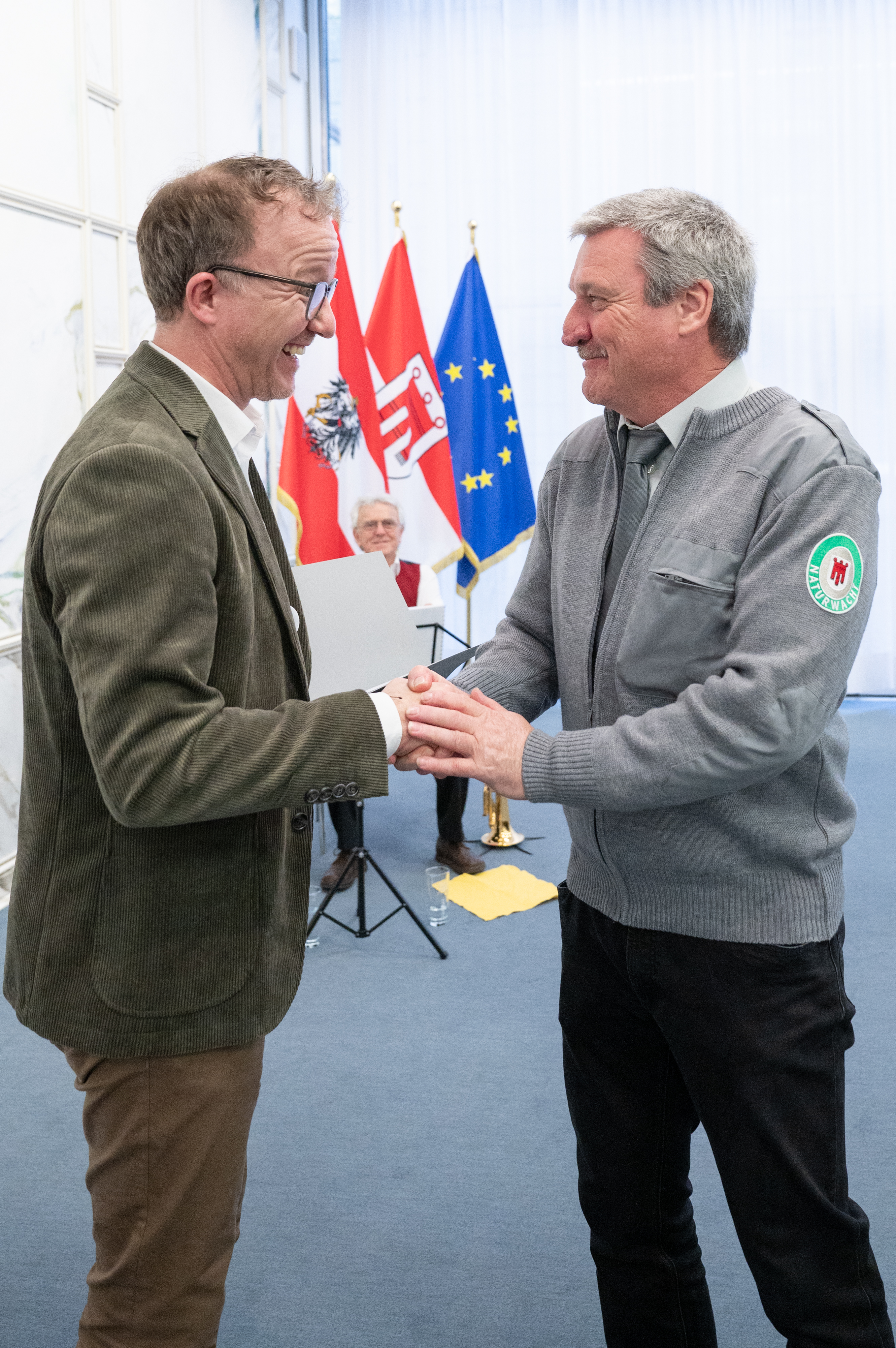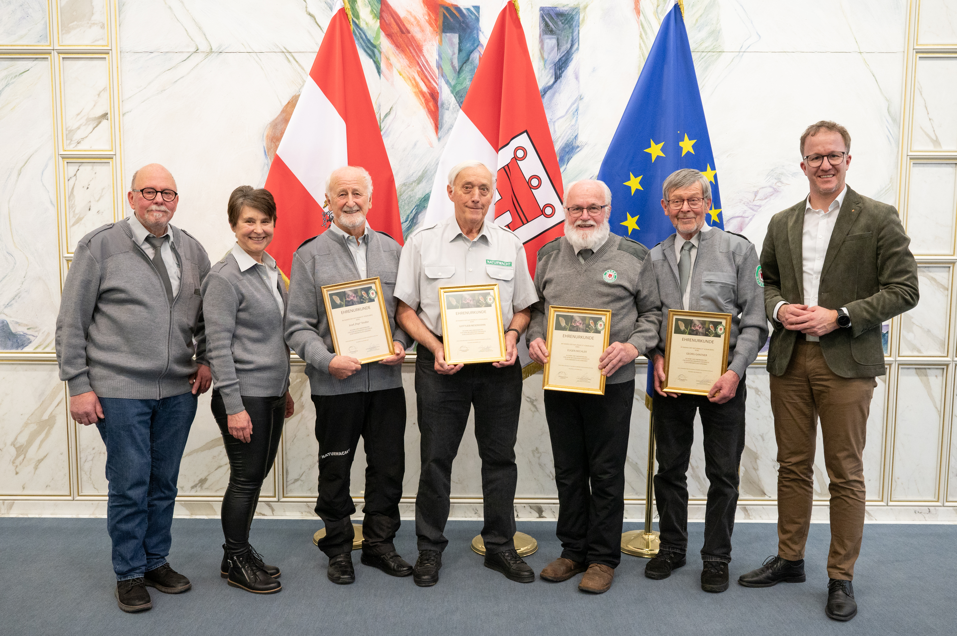 Im Rahmen der Veranstaltung wurden auch fünf Personen für ihre langjährige Mitgliedschaft bei der Naturwacht geehrt. „Sie alle zeichnet nicht nur ihre jahrzehntelange Tätigkeit als Naturwächter aus, sondern vor allem ihr herausragendes Engagement und ihre Leidenschaft für die Natur, die sie ein Stück weit zu ihrer Berufung gemacht haben“, betonte der Landesrat und bedankte sich für den Einsatz.