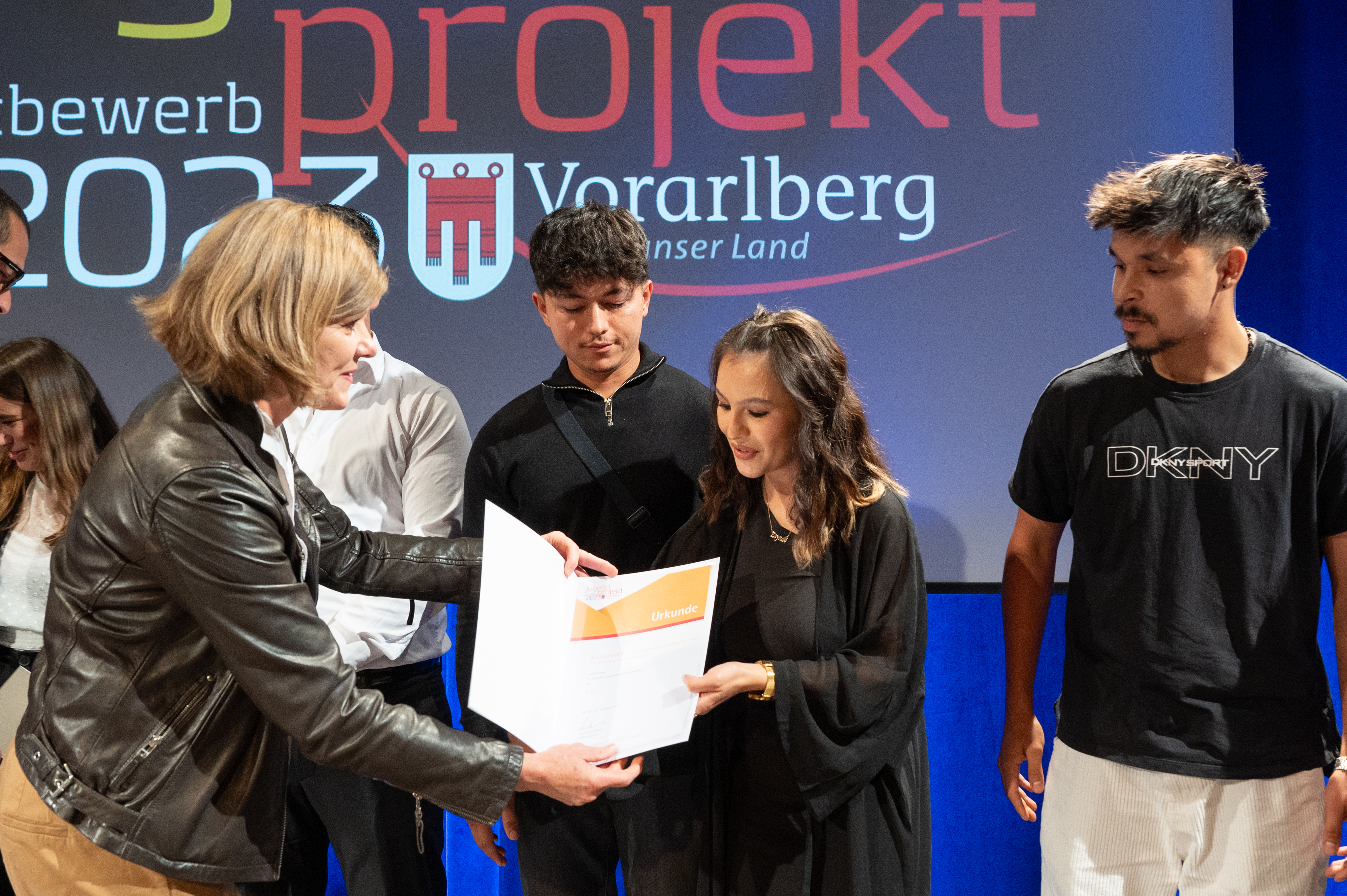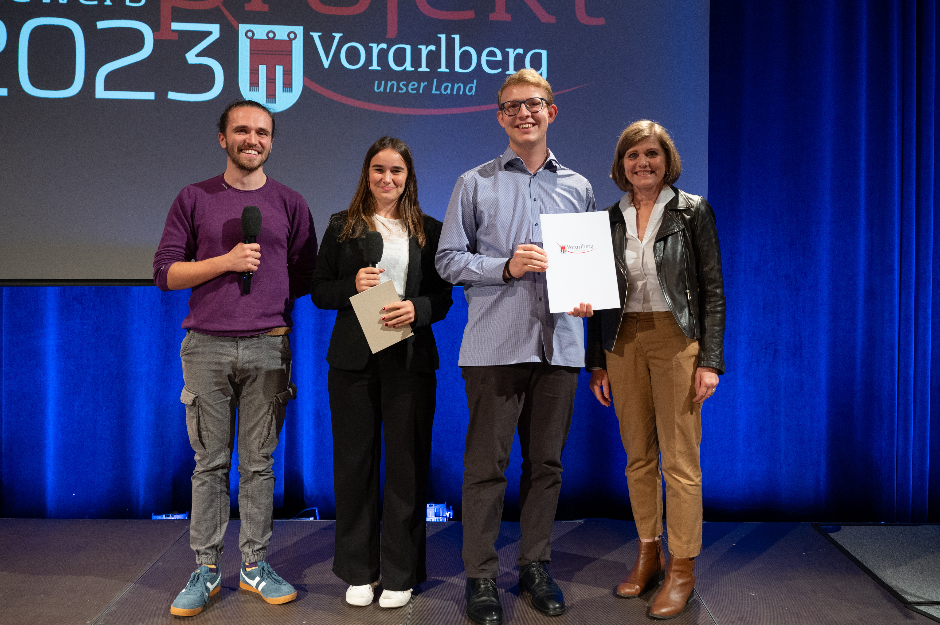 Jurymitglieder waren die Schülerin Esra Karsli, der Student Samuel Rhomberg, Marisa Beer von Wirtschaftskammer Vorarlberg, Semih Morel und Angelina Niederl. Die Preisgelder in Gesamthöhe von 4.500 Euro für die Prämierten ergänzte die Wirtschaftskammer Vorarlberg um Gutscheine im Wert von 2.000 Euro für alle Projektgruppen.