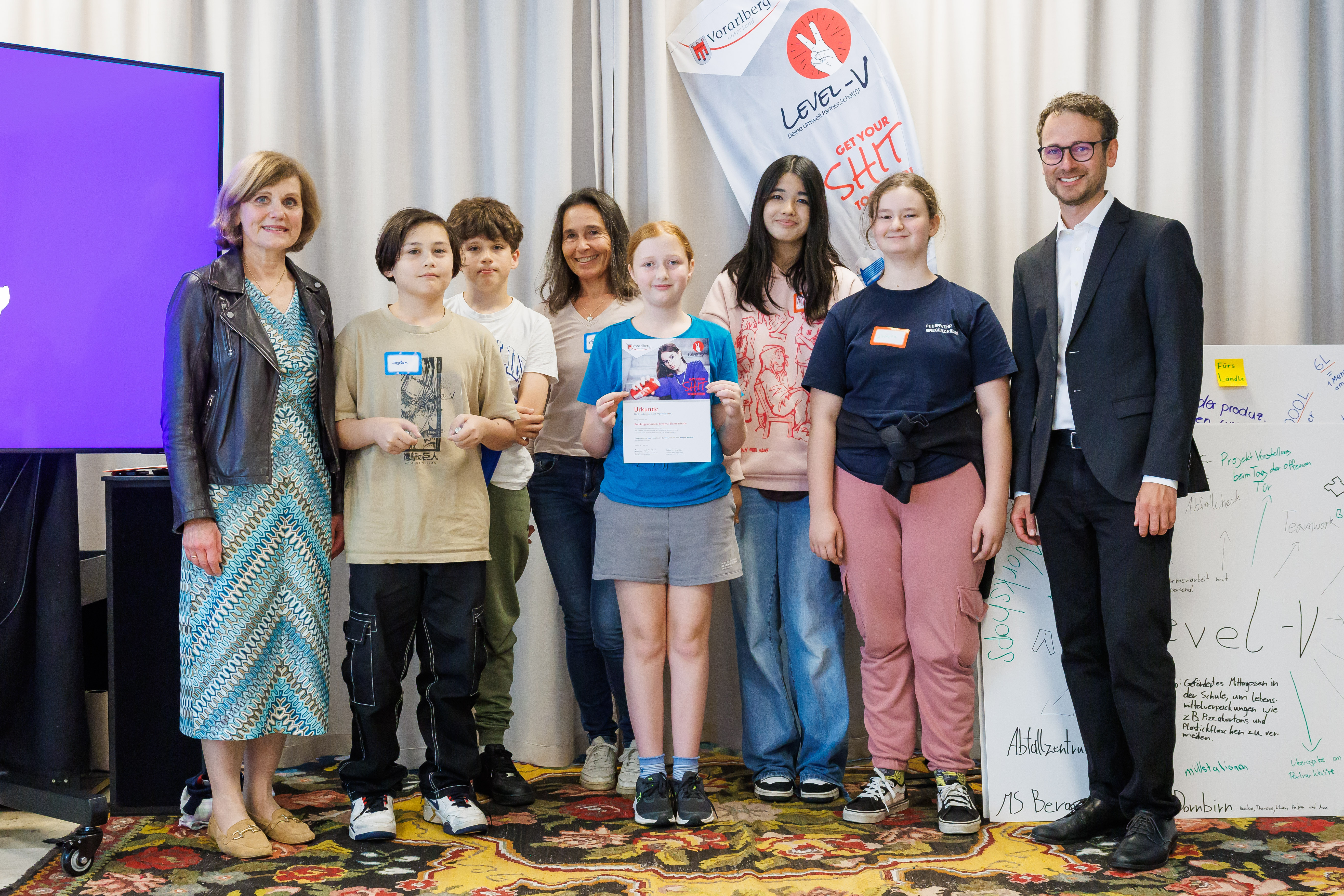 Im Rahmen der Öffentlichkeitsarbeit des Landes Vorarlberg wurde 2006 die Abfallvermeidungskampagne „RIKKI –Schlauberger vermeiden Abfall“ gestartet. Diese bewusstseinsbildende Initiative richtet sich an Kinder bis 10 Jahre. „Level-V“ ist aufbauend auf „RIKKI“ auf die Zielgruppe der 10- bis 18-Jährigen in der Sekundarstufe I und II ausgerichtet. Pro teilnehmende Schule wurde im Schuljahr 2023/2024 jeweils eine Klasse auf ihrem Weg Richtung Nachhaltigkeit und Schärfung des eigenen Umweltbewusstseins begleitet. Zwölf Schulklassen haben dieses Programm abgeschlossen. „Wir unterstützen die Wünsche der Jugendlichen nach Veränderung mit Wissen und Werkzeugen, um dies auch zu erreichen“, sagte Landesrat Zadra. Gezielt wird dort angesetzt, wo jeder kleinste Beitrag konkrete und sichtbare Auswirkungen aufzeigt, nämlich beim Abfall.