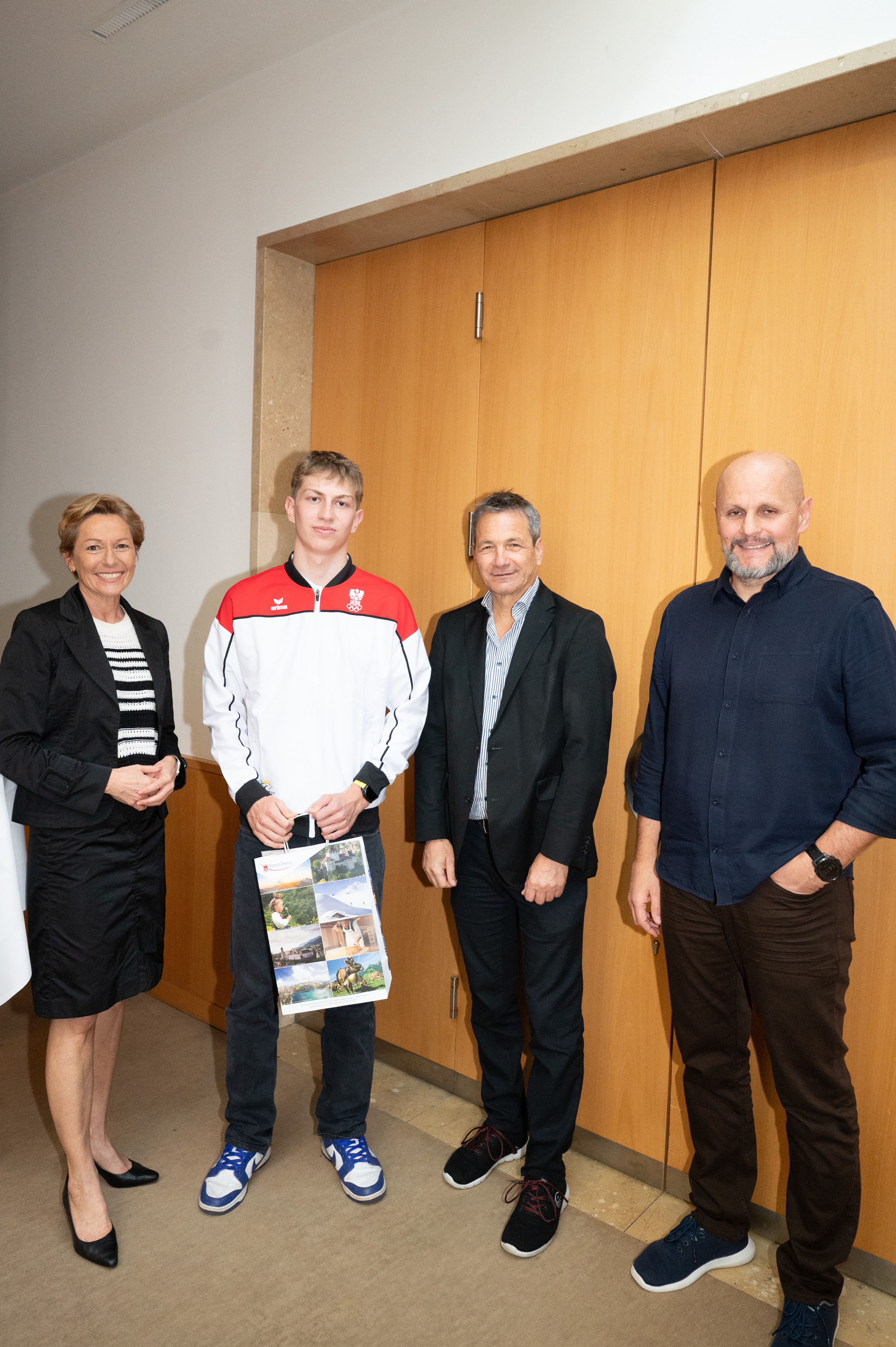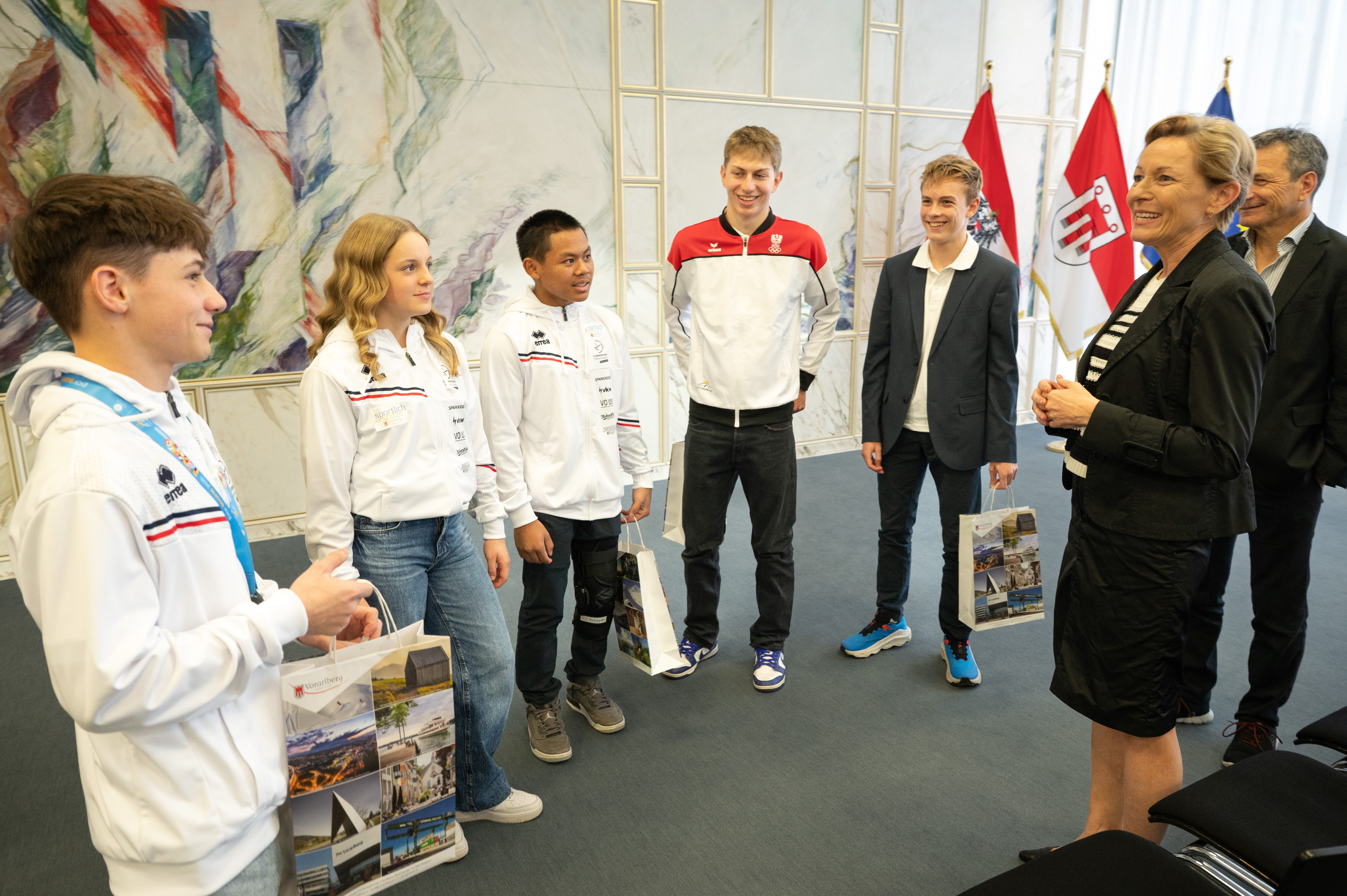 Bregenz (VLK) – Sportlandesrätin Martina Rüscher empfing heute Freitag (31. Oktober 2025, im Landhaus in Bregenz die sieben Vorarlberger TeilnehmerInnen des diesjährigen European Youth Olympic Festival (EYOF) in Skopje. Die jungen Talente haben mit ihren Leistungen nicht nur das Land Vorarlberg, sondern auch das Youth Olympic Team Austria würdig vertreten. „Ganz Vorarlberg hat sich mit euch über die großartigen Leistungen gefreut“, bedankte sich die Landesrätin.