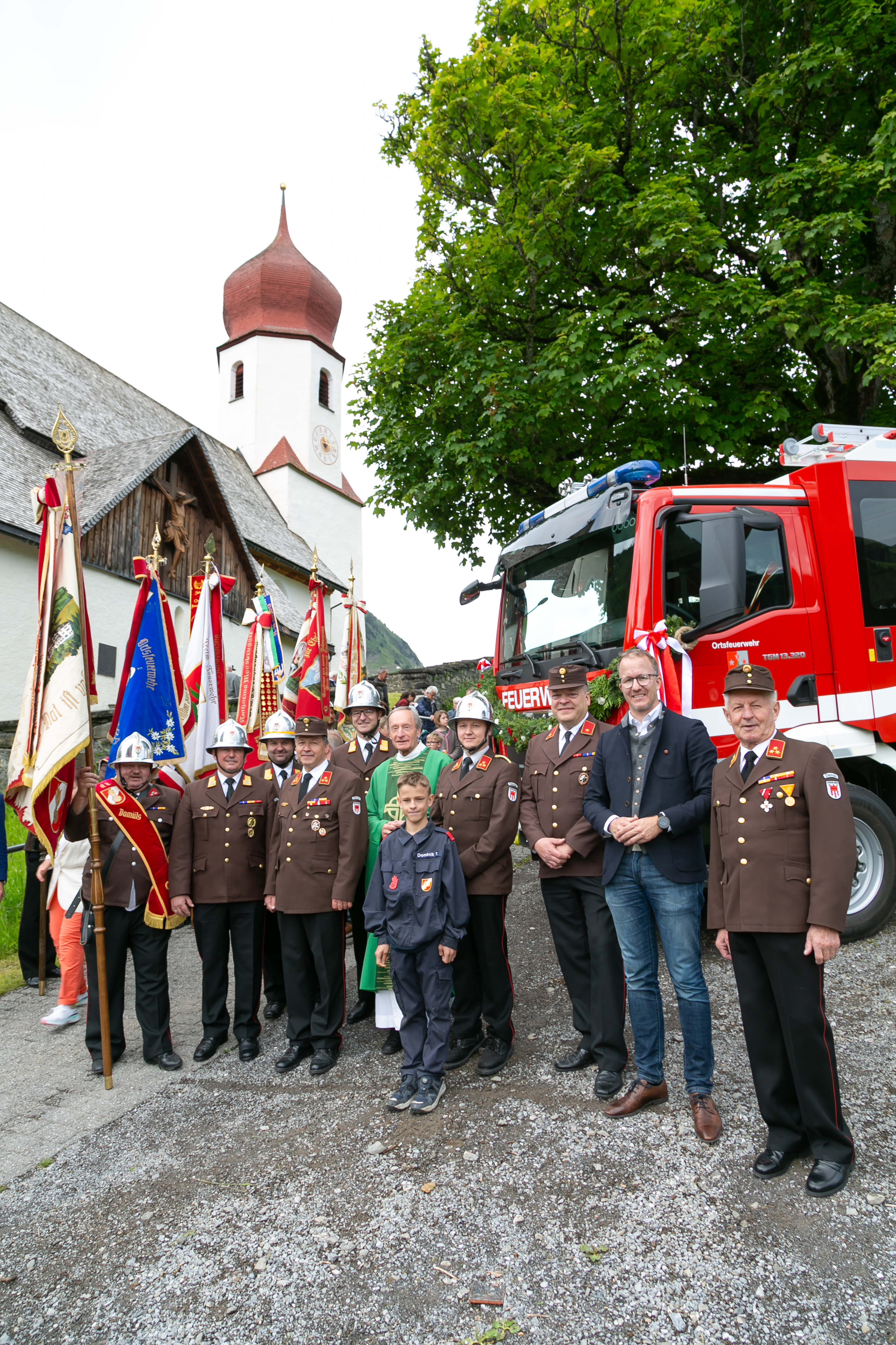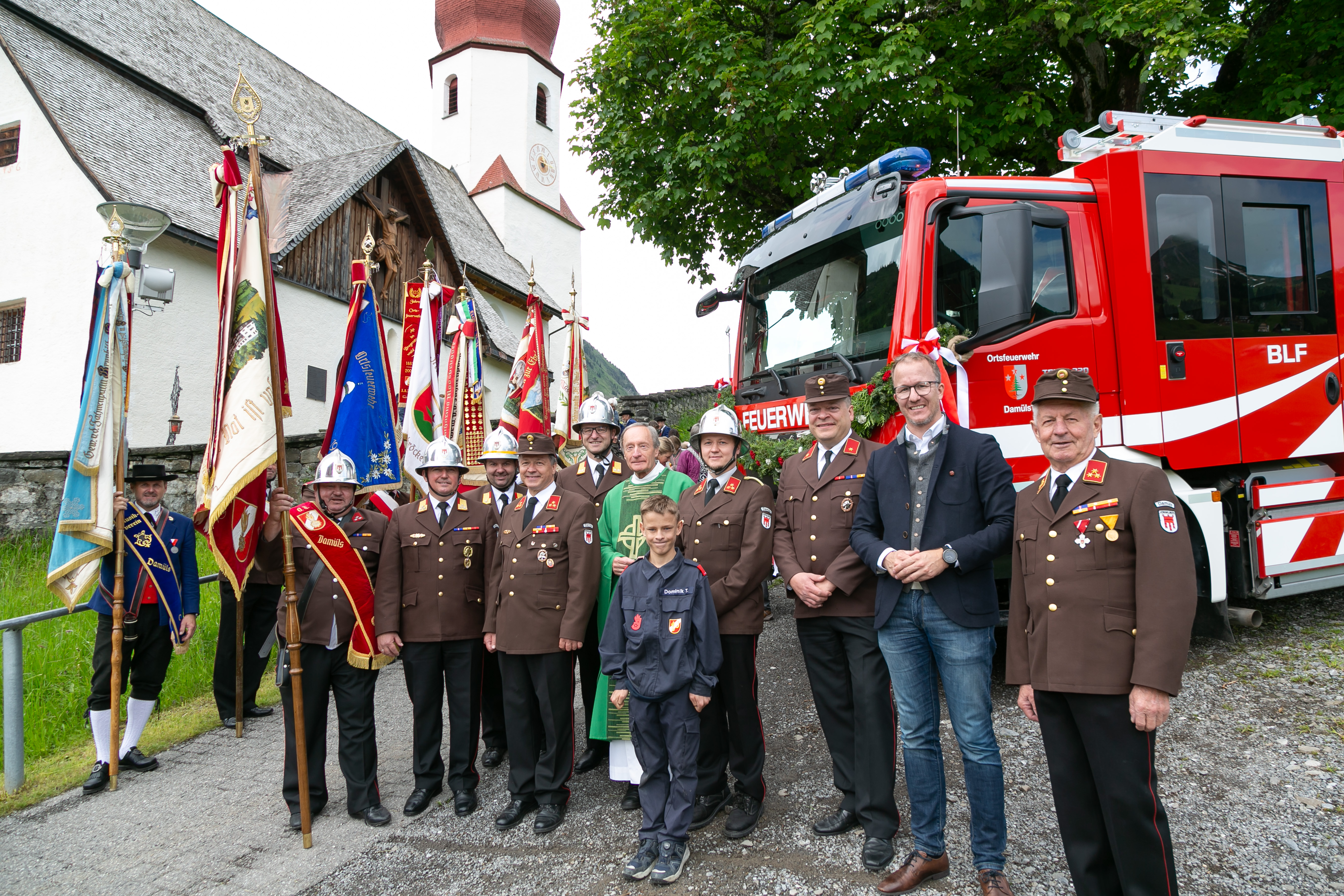Damüls (VLK) – Bei der heutigen (Sonntag, 16. Juni) Segnung des neuen Bergland Lösch Fahrzeugs (BLF) für die Feuerwehr Damüls unterstrich Sicherheitslandesrat Christian Gantner einmal mehr die Bedeutung gut ausgerüsteter Ortsfeuerwehren für das hohe Sicherheitsniveau in Vorarlberg. „Unsere Feuerwehrleute leisten einen unverzichtbaren Dienst für den Schutz und die Sicherheit der Bevölkerung. Das gilt es mit unseren Investitionen in Infrastruktur und Ausstattung bestmöglich zu unterstützen“, betonte Gantner und beglückwünschte die Mitglieder der Damülser Ortsfeuerwehr mit Kommandant Arnold Türtscher zu der Neuanschaffung.
