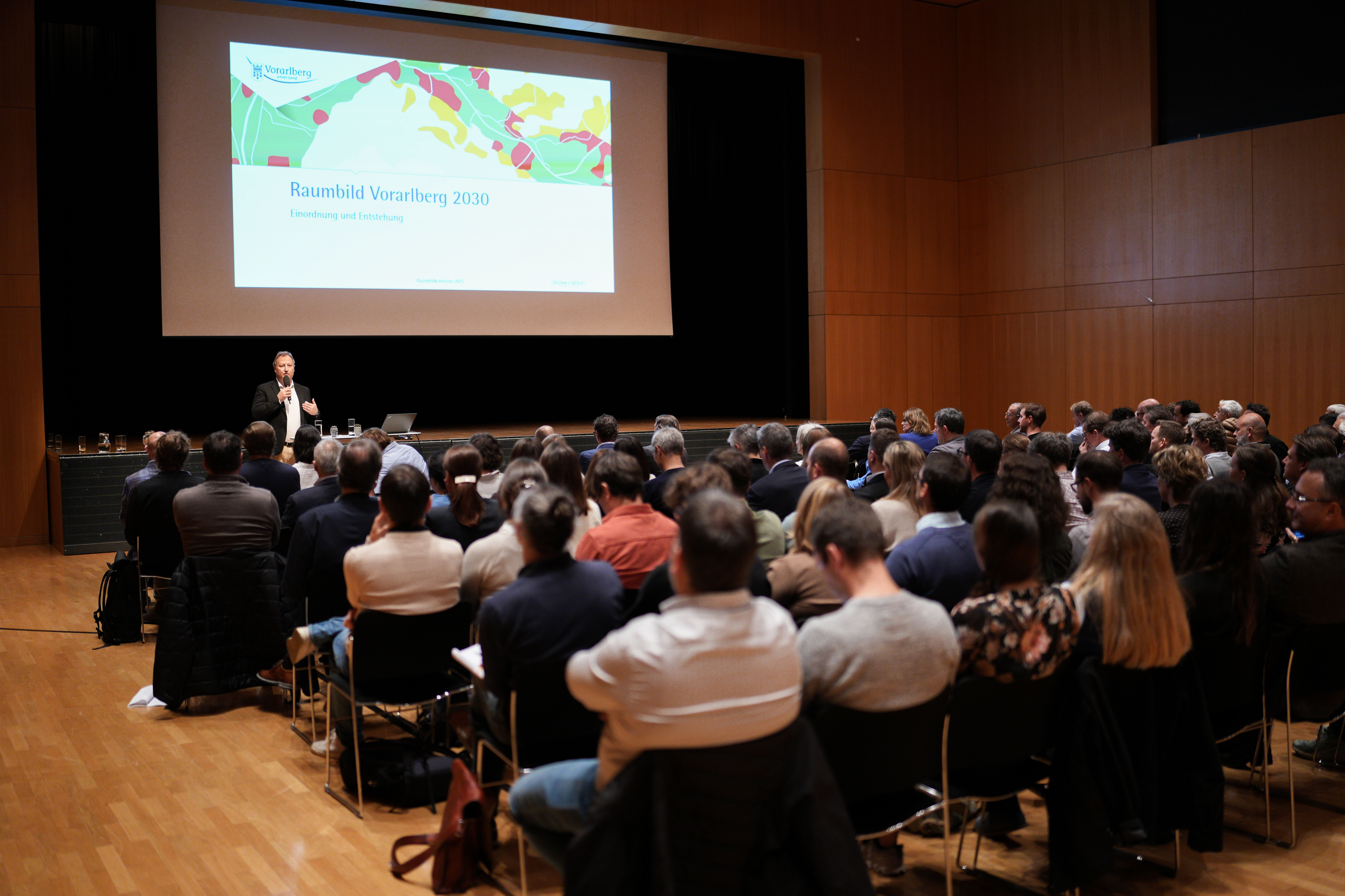 Am Vormittag stand der Rückblick auf die Entwicklung seit 2019 im Mittelpunkt – mit Schwerpunkten wie Standortentwicklung, Klimawandelanpassung und den Erfahrungen aus der bisherigen Umsetzung des Raumbildes. Inzwischen haben sich die Welt und somit auch die Rahmenbedingungen in Vorarlberg stark verändert. Der Nachmittag richtete deshalb den Blick nach vorne auf die zukünftige räumliche Entwicklung Vorarlbergs. Die Ergebnisse der Konferenz sowie einer breiten Online-Beteiligung fließen maßgeblich in den Raumbericht 2025 ein.