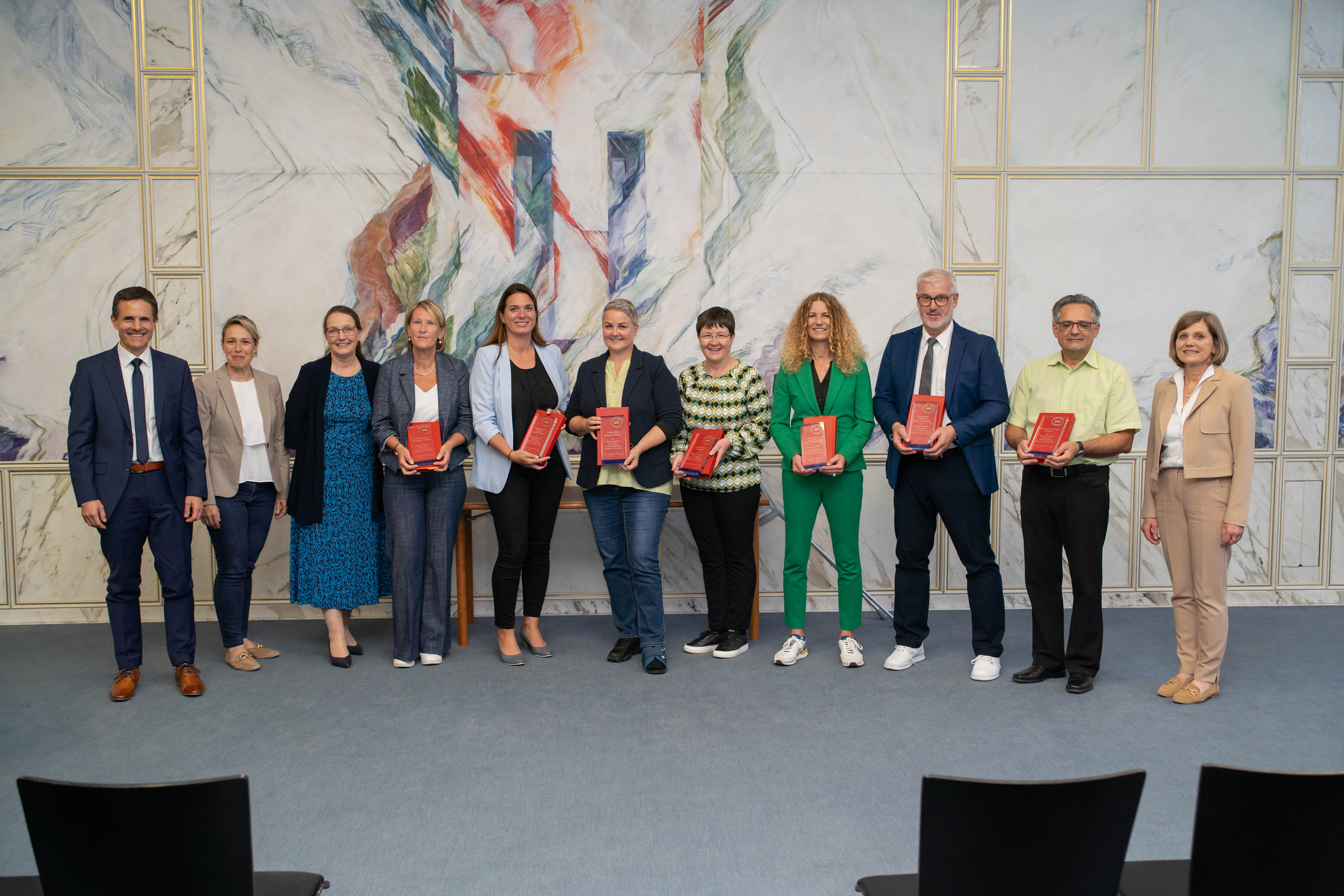 Bregenz (VLK) – „Sinnerfassend lesen zu können, ist der Schlüssel zu einer erfolgreichen Bildungslaufbahn, zu Wissenserwerb und sozialer Zugehörigkeit. Daher ist es unser Ziel, an unseren Schulen die Sprach- und Leseförderung als festen Bestandteil im Schulalltag zu etablieren und zu stärken.“ Das sagte Landesstatthalterin Barbara Schöbi-Fink am Mittwoch, 11. Oktober 2023, im Landhaus bei der Zertifizierungsfeier für die ersten sieben Schulen, die das Gütesiegel „Lesende Schule Vorarlberg“ in Gold oder Silber erlangt haben.