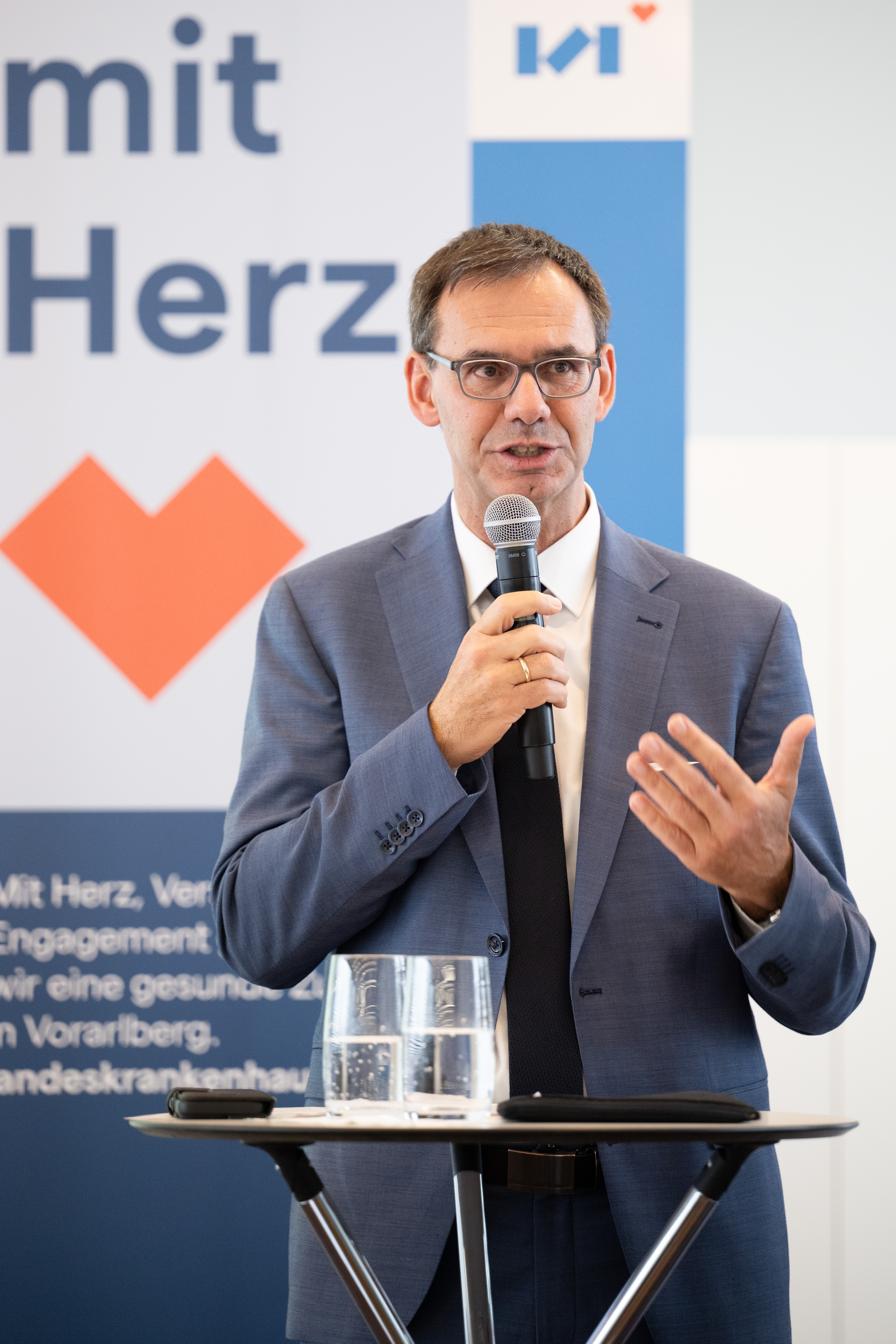 „Vorarlberg ist ein relativ kleines Bundesland mit 400.000 EinwohnerInnen. Für die Bevölkerung die optimale Versorgung zu garantieren, wird uns nur gelingen, wenn wir unsere Ressourcen und unsere Energie bündeln. Das heißt, wenn wir unsere Anstrengungen an nur wenigen Orten konzentrieren. Jeder Patient, jede Patientin wünscht sich eine hohe medizinische Expertise möglichst wohnortnah. Die Nähe zum Wohnort ist hier im Land üblicherweise gegeben. Durch die Bündelung unserer Kräfte wollen wir erreichen, dass wir zu jedem medizinischen Thema eine ganz hohe Expertise anbieten können. Viele Mitarbeitende sehen Zufriedenheit am Arbeitsplatz darin, dass sie sich komplexen Themen mit hoher Expertise widmen können. Wenn wir spezielle medizinische Fragestellungen an einem Standort konzentrieren, werden wir genau dort diese zufriedenen MitarbeiterInnen finden.“
