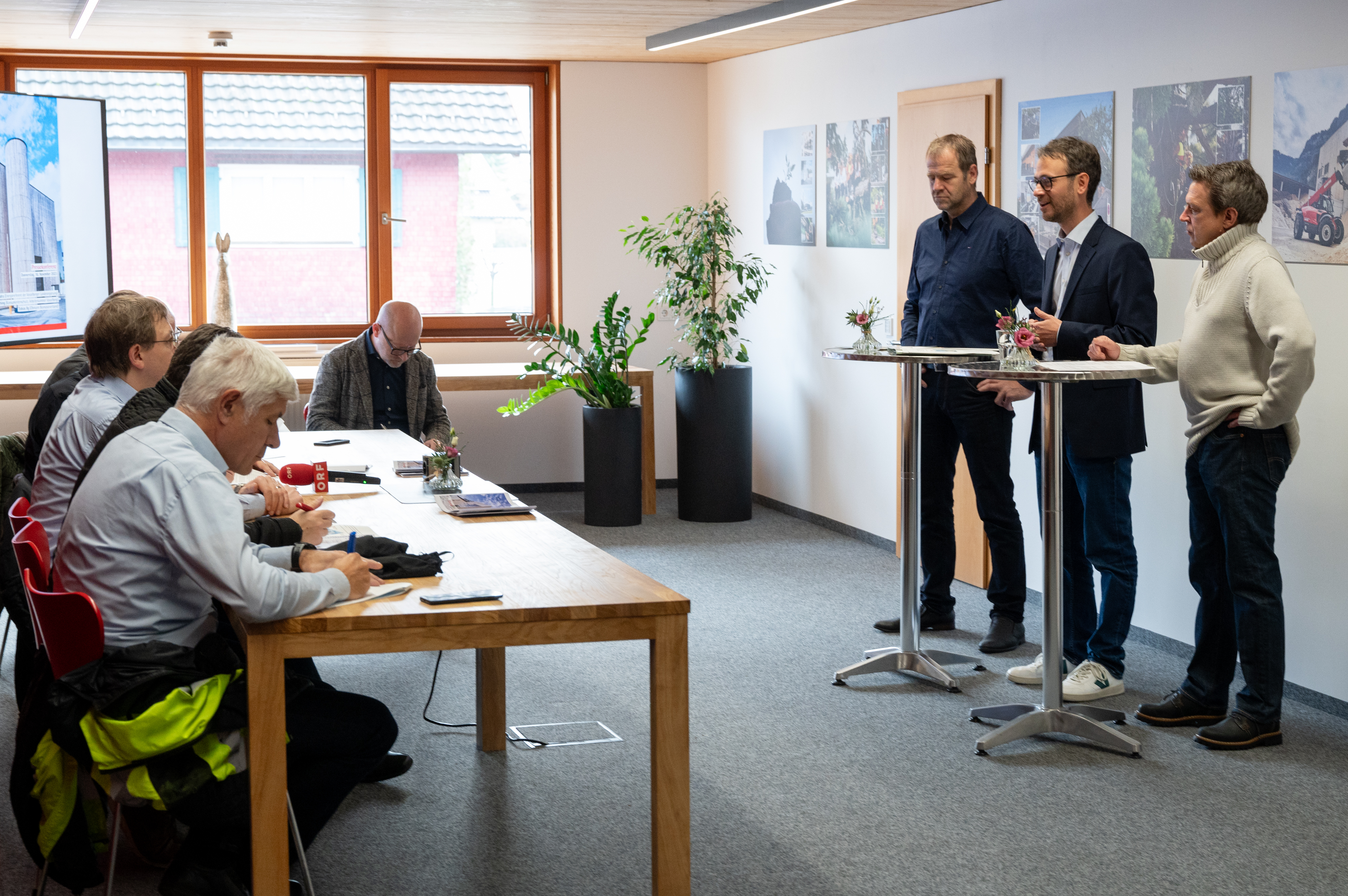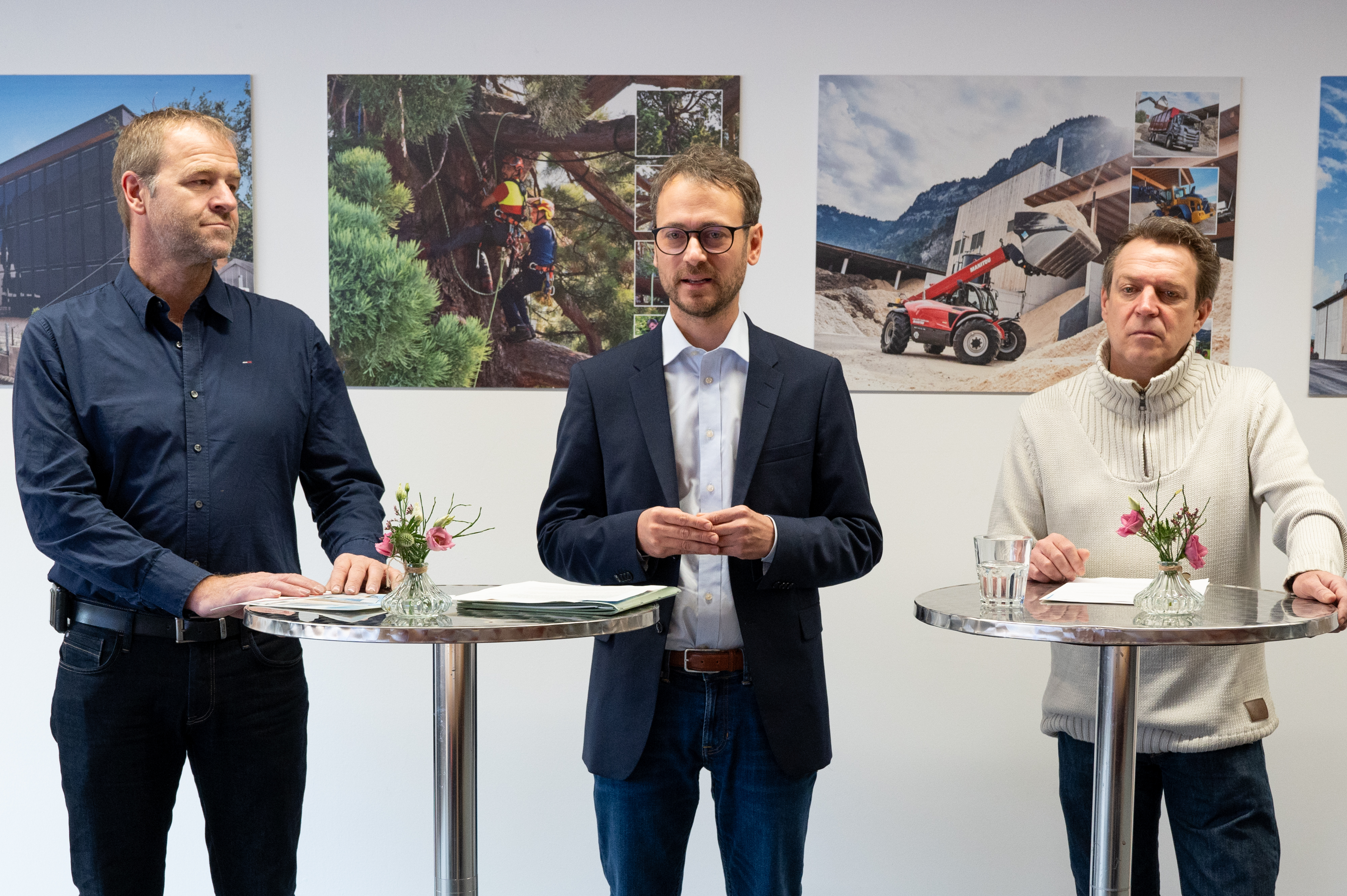 Vorarlberg richtet einen Biomasse-Nahwärmeindex ein – Landesrat Daniel Zadra, AK-Konsumentenschützer Paul Rusching und Tobias Ilg, Obmann des Biomasseverbands