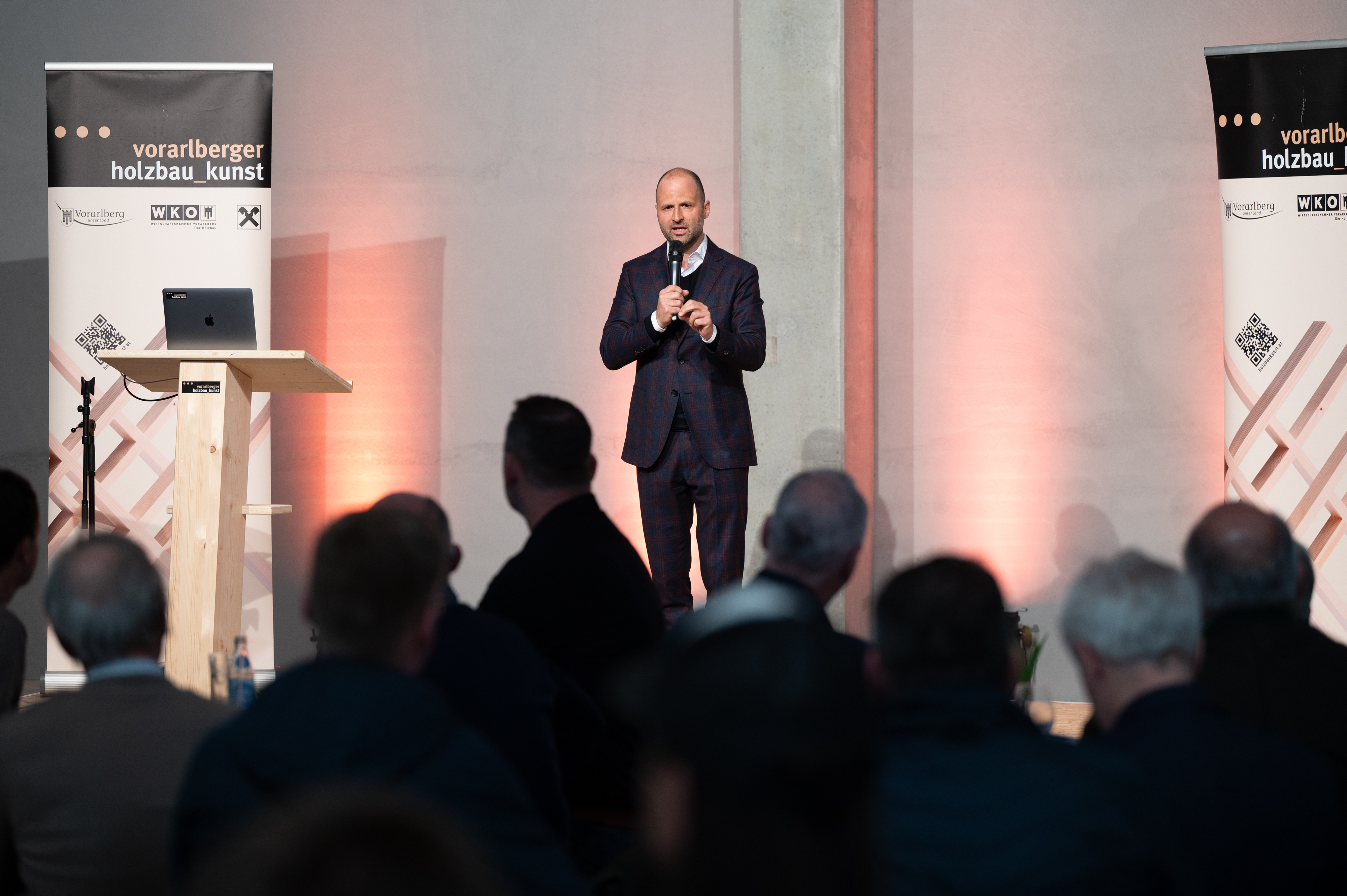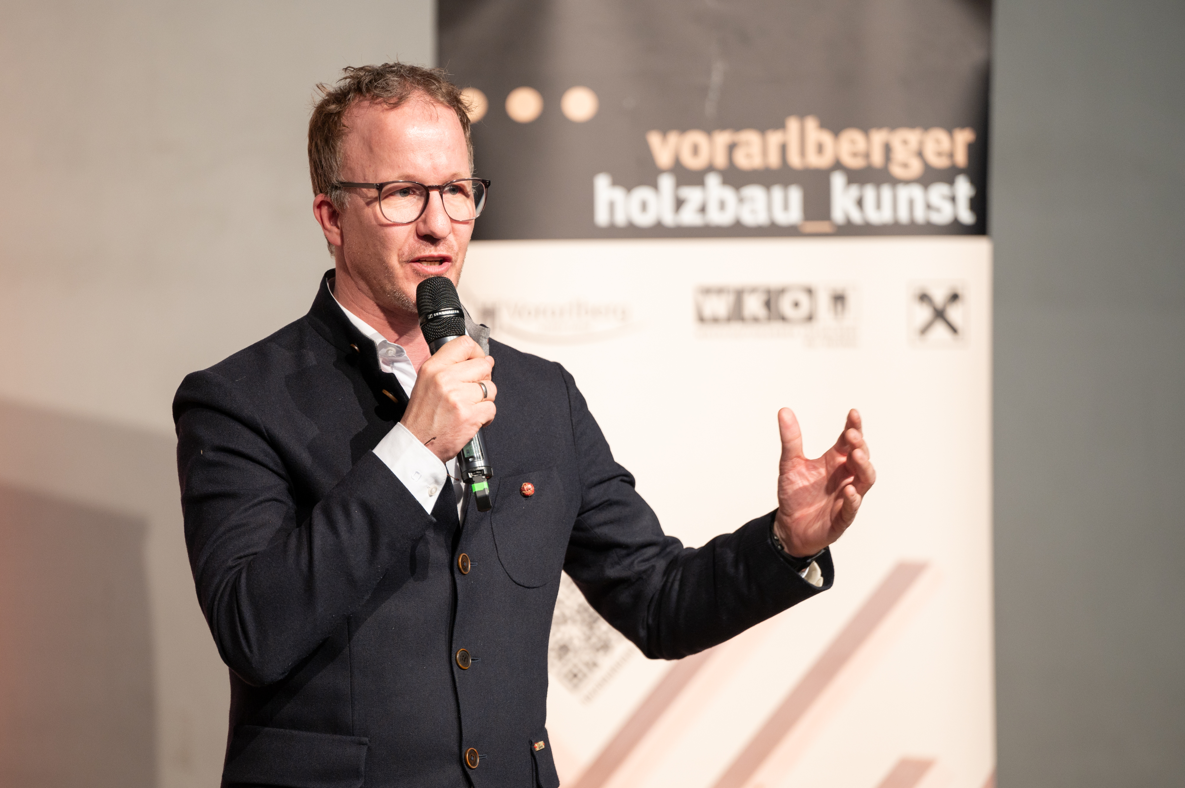 „Holz ist ein vielfältig nutzbarer Rohstoff, der Holzbau ist dabei die hochwertigste Verwendungsform“, sagte Landesrat Gantner. Dass der weit über die Landesgrenzen hinausreichende hervorragende Ruf von Vorarlberger Holzbaukunst über die Jahre zu einem regelrechten Architekturtourismus geführt hat, freue ihn sowohl als Forst- als auch als Tourismuslandesrat. „Dementsprechend ist es uns ein Anliegen, auch in Zukunft möglichst weite Teile der hölzernen Wertschöpfungskette bei uns im Lande zu halten“, so Gantner.