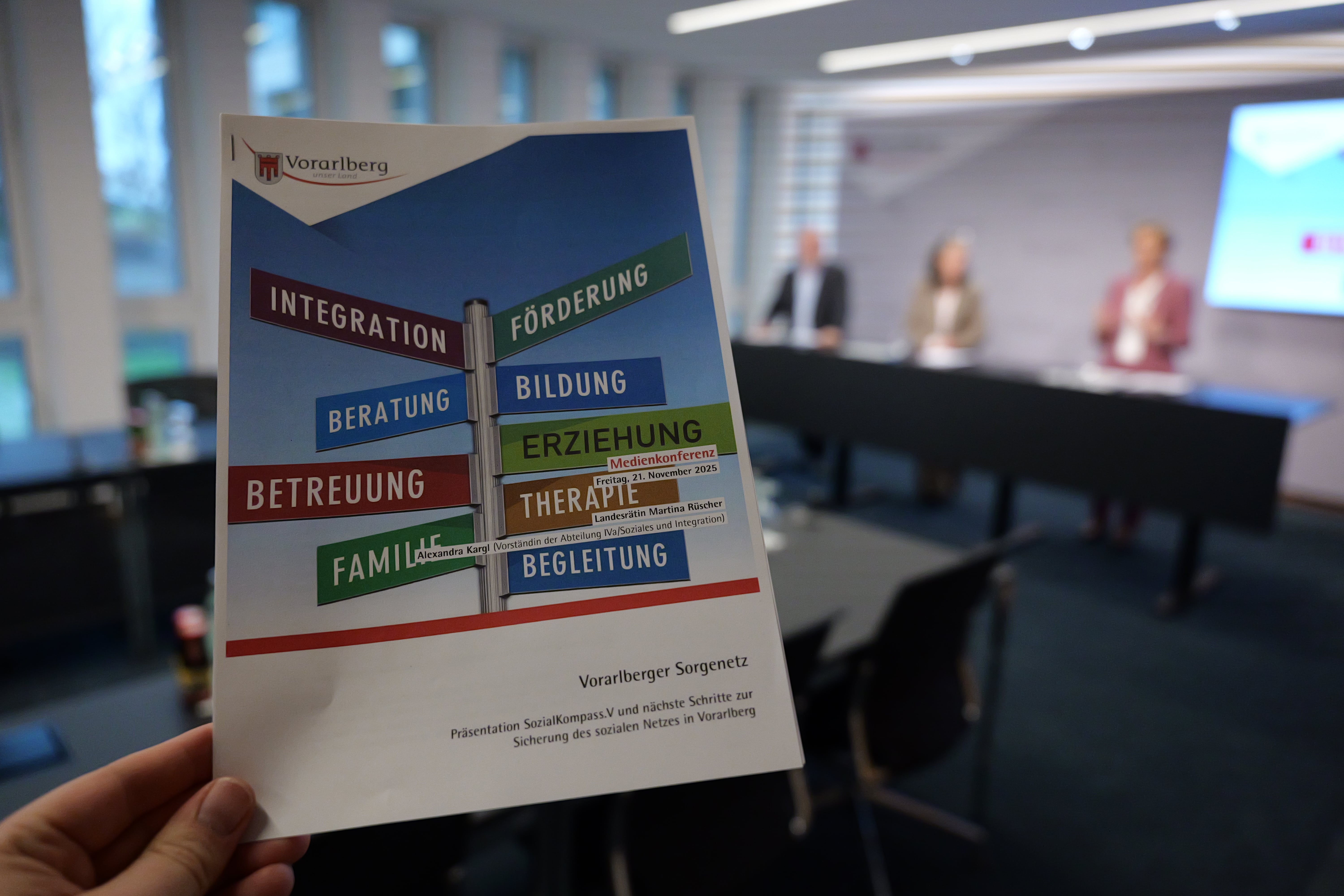 Medieninformation Freitag, 21.11.2025, 11:00 Vorarlberger Sorgenetz – Präsentation SozialKompass.V und nächste Schritte zur Gestaltung und Sicherung des sozialen Netzes in Vorarlberg Die neue Sozialfonds-Strategie und der Kompass zur richtigen Hilfeleistung
