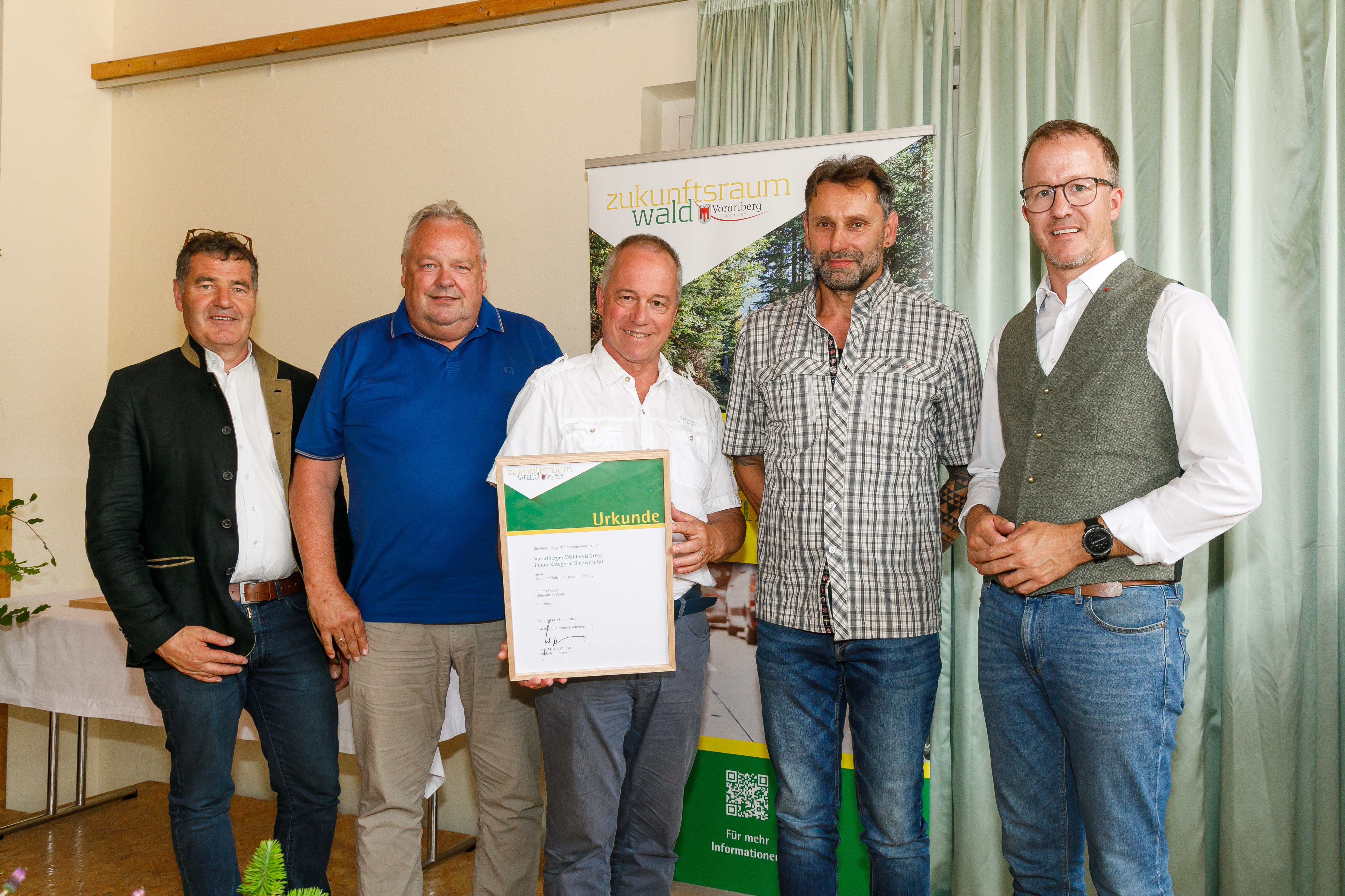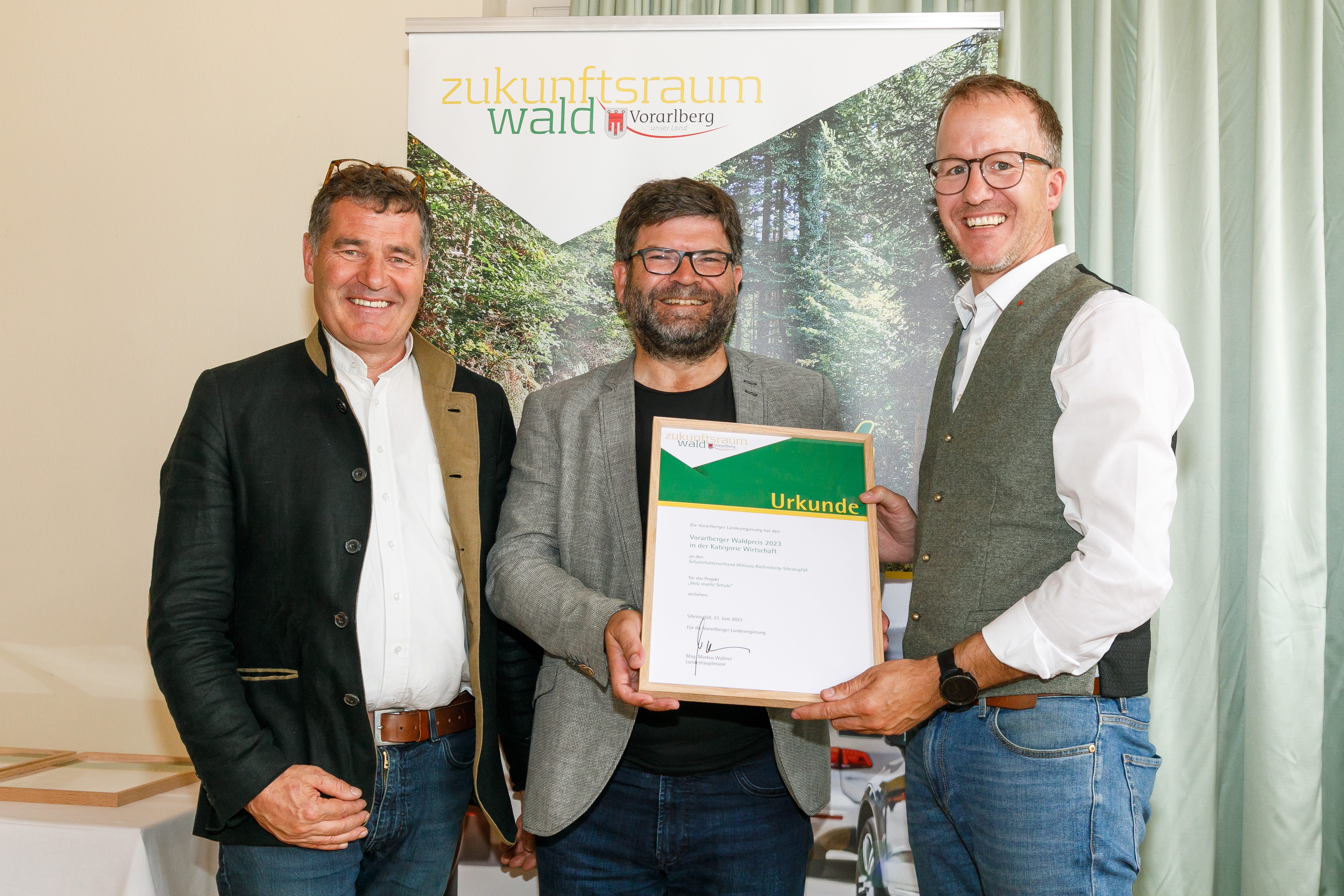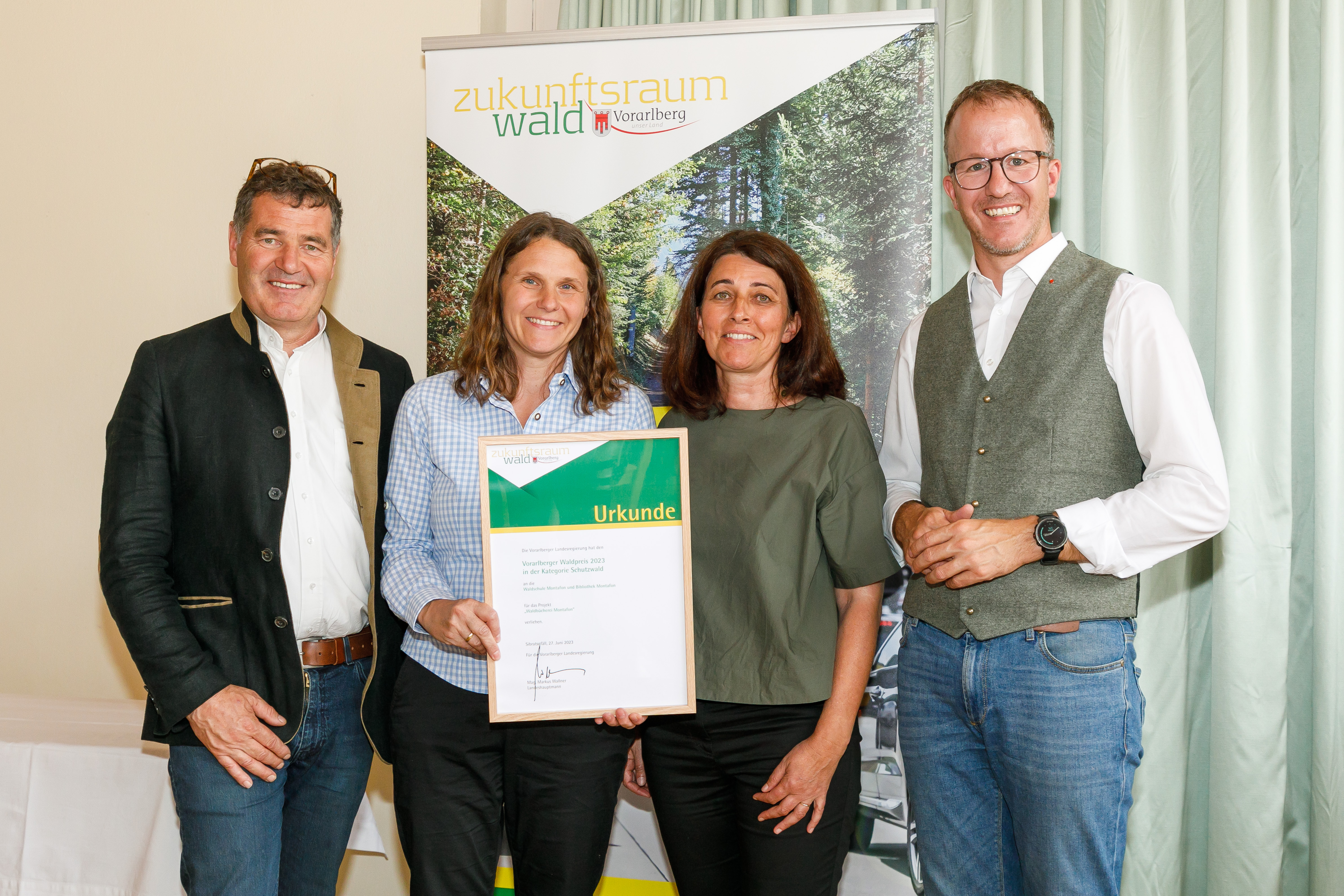 „Mit unserer Waldstrategie 2030+ haben wir eine Richtschnur für WaldbewirtschafterInnen und Behörden, die darauf abzielt, all die wichtigen Funktionen des Waldes nachhaltig zu erhalten, sodass auch kommende Generationen einen chancenreichen Lebensraum vorfinden“, betonte Landesrat Gantner. Die Strategie wurde vom Vorarlberger Landtag einstimmig beschlossen. Zu jedem ihrer fünf strategischen Ziele wurde ein Waldpreis an herausragende Projekte verliehen. „Die Jury hatte es dieses Jahr nicht leicht, denn es wurden sehr viele preiswürdige Projekte eingereicht“, sagte Gantner. Die Preise sind mit je 1.000 Euro dotiert.