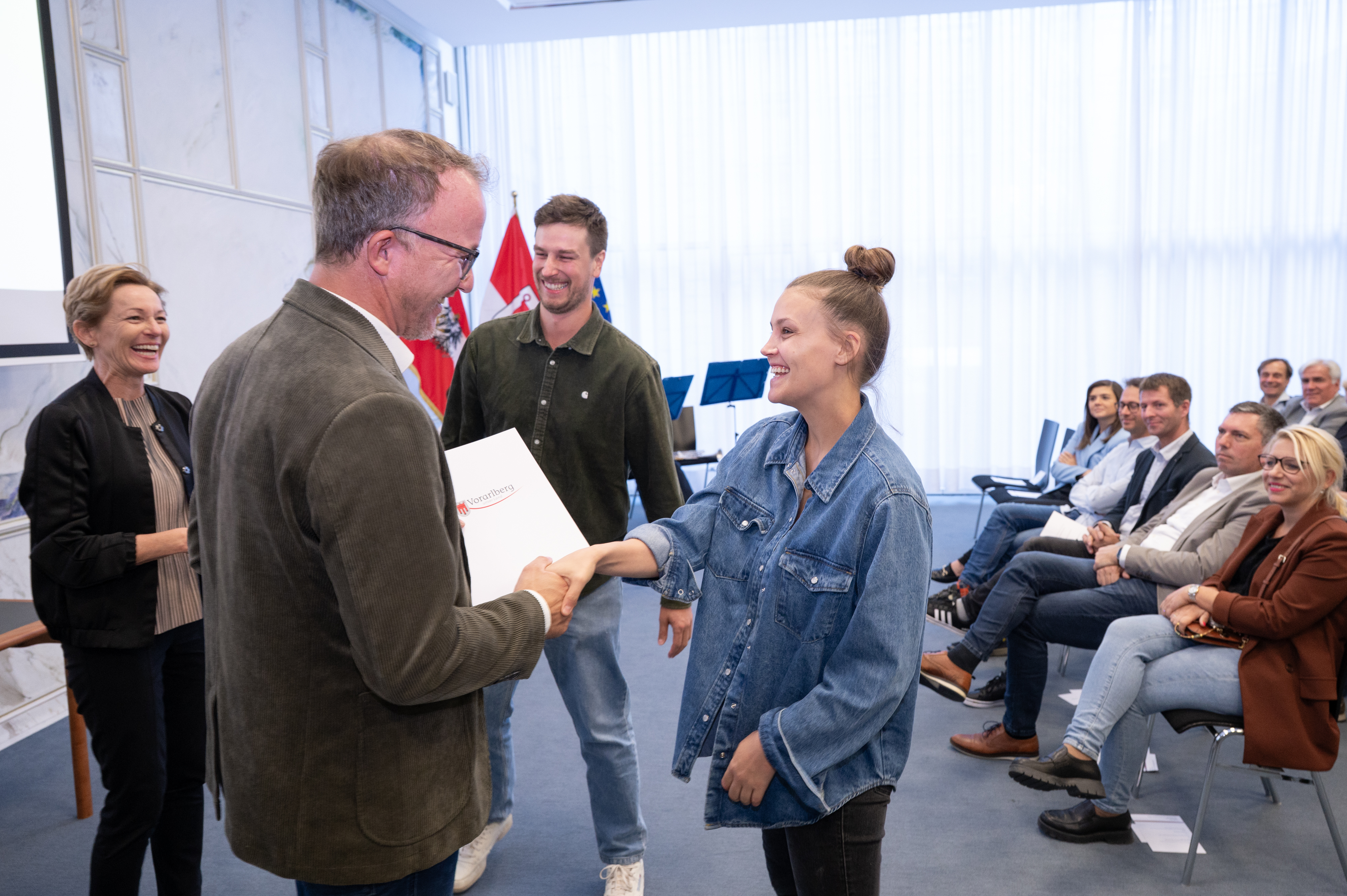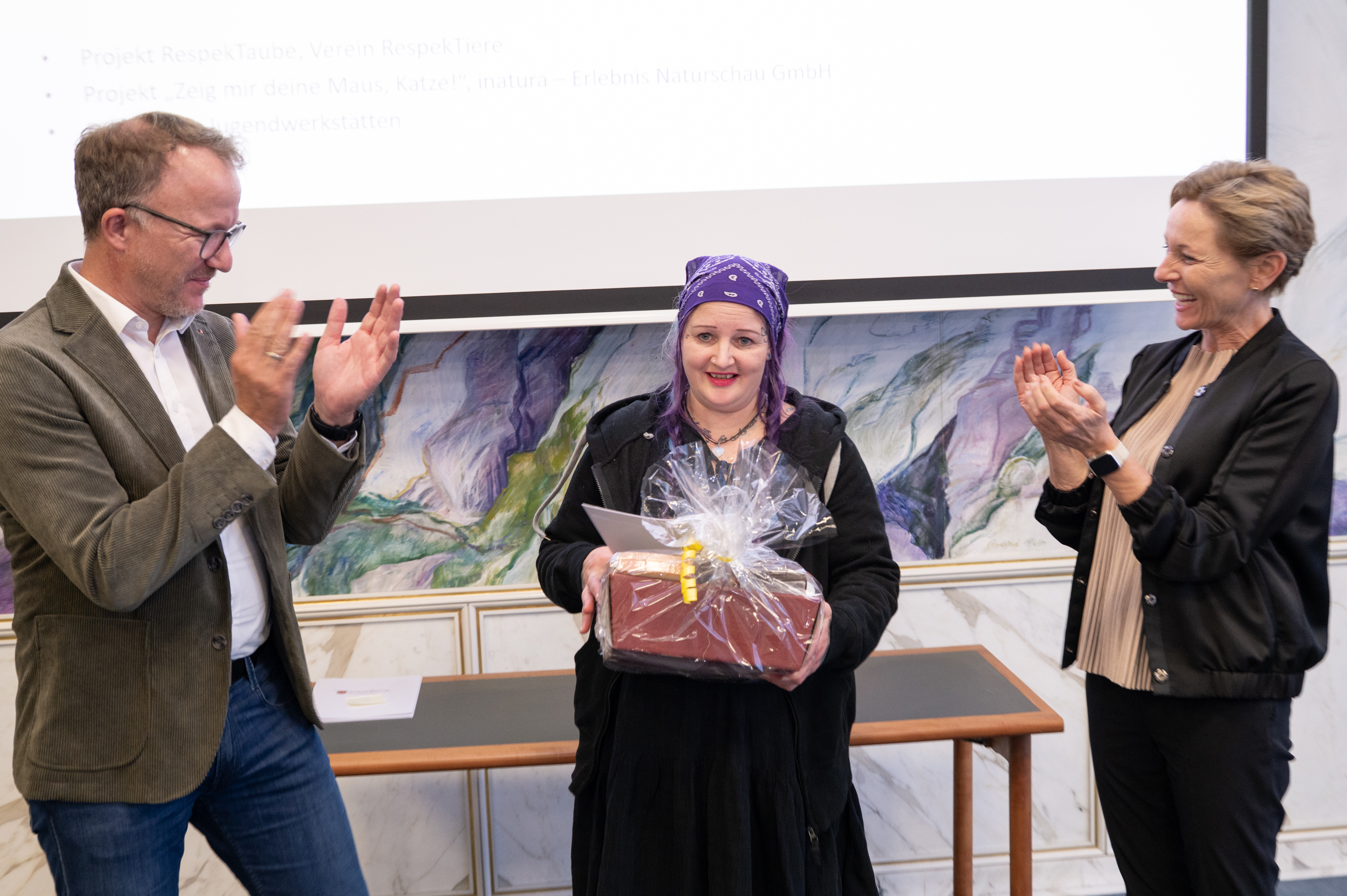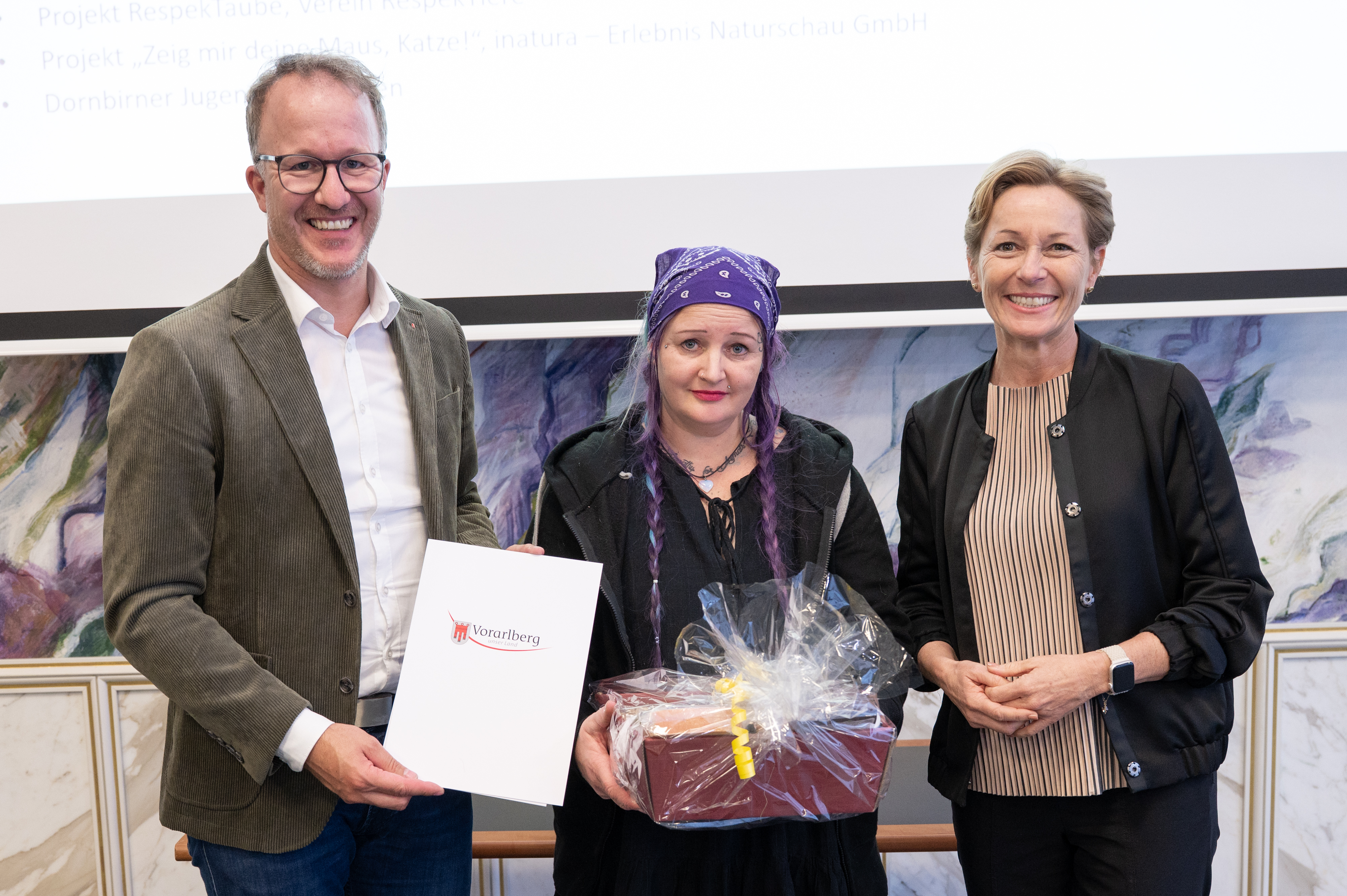 Bregenz (VLK) – Passend zum anstehenden Welttierschutztag (Samstag, 4. Oktober) überreichten Landesrätin Martina Rüscher und Landesrat Christian Gantner heute (Donnerstag, 2. Oktober) im Landhaus die Tierschutzpreise des Landes Vorarlberg. „Wir wollen damit erneut herausragendes Engagement für das Wohl von Tieren und für eine positive Mensch-Tier-Beziehung ins Licht rücken. Herzliche Gratulation an die PreisträgerInnen und ein großes Dankeschön an alle, die ihre wertvollen Initiativen und Projekte eingereicht haben“, sagten Rüscher und Gantner.