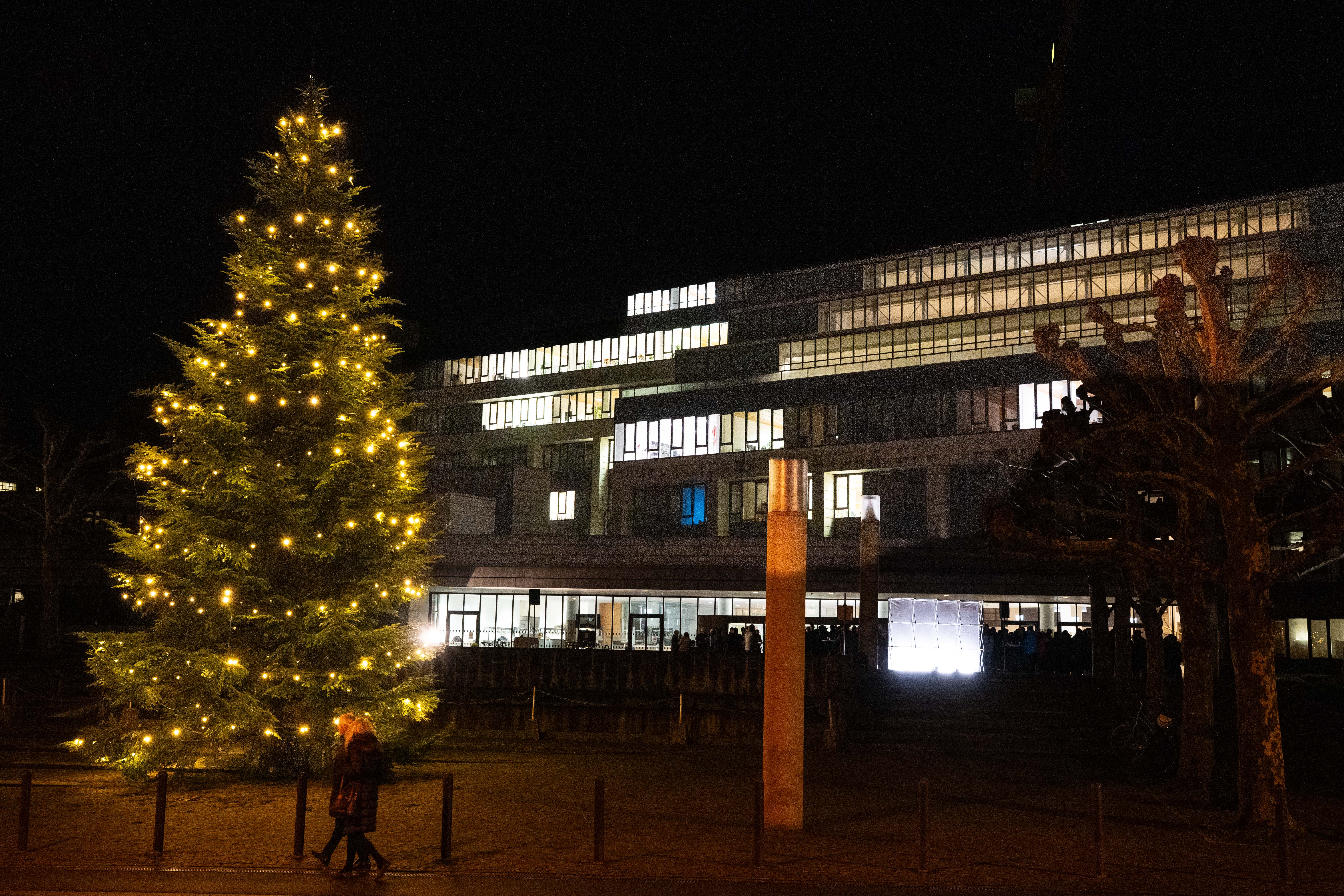 Bregenz (VLK) – Der Weihnachtsbaum vor dem Landhaus, heuer ein Geschenk der Gemeinde Egg, erstrahlt seit heute Abend (Donnerstag, 27. November) wieder in festlichem Licht. Die feierliche Illuminierung der rund 13 Meter hohen Weißtanne fand am Vorplatz des Landhauses in Bregenz statt.