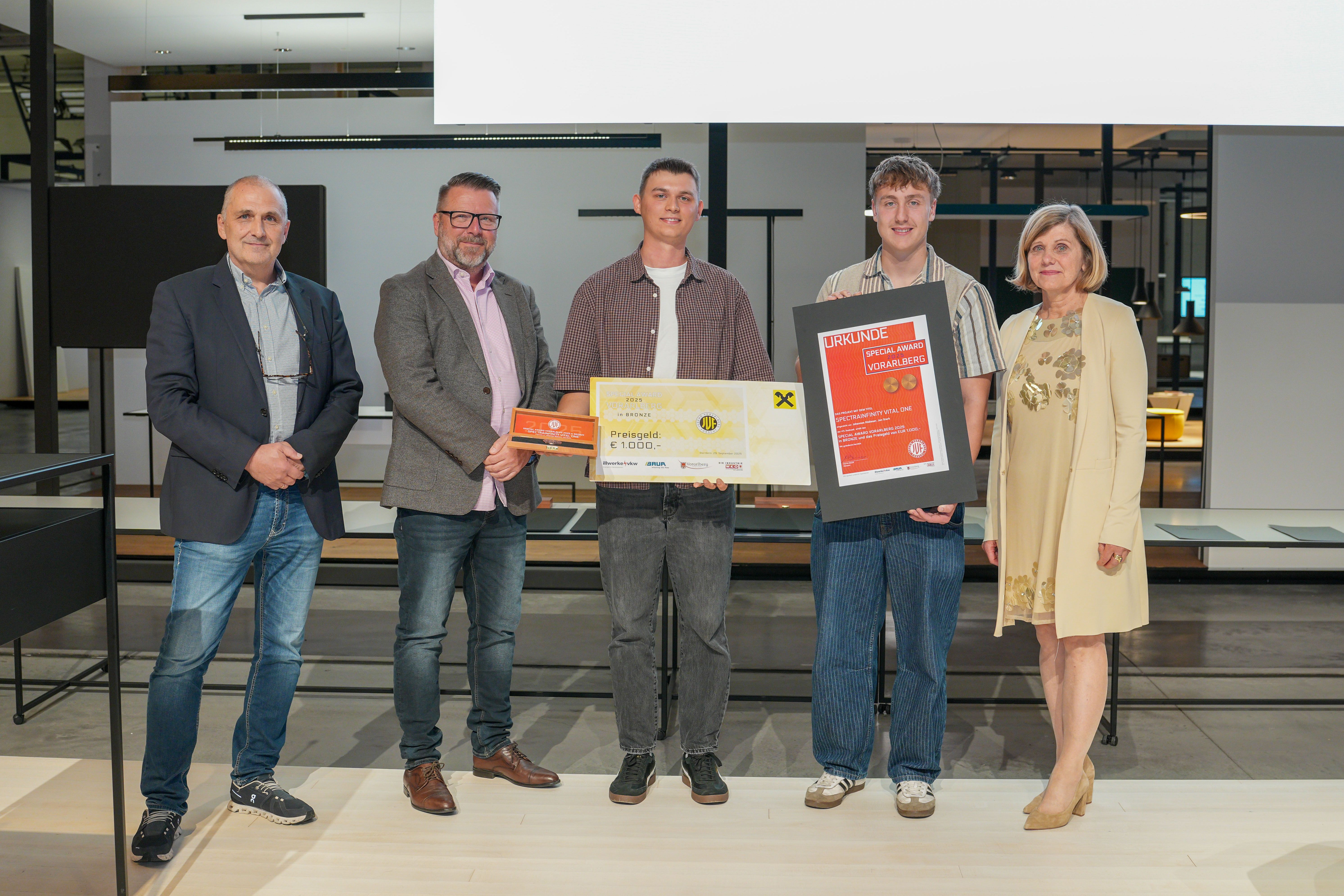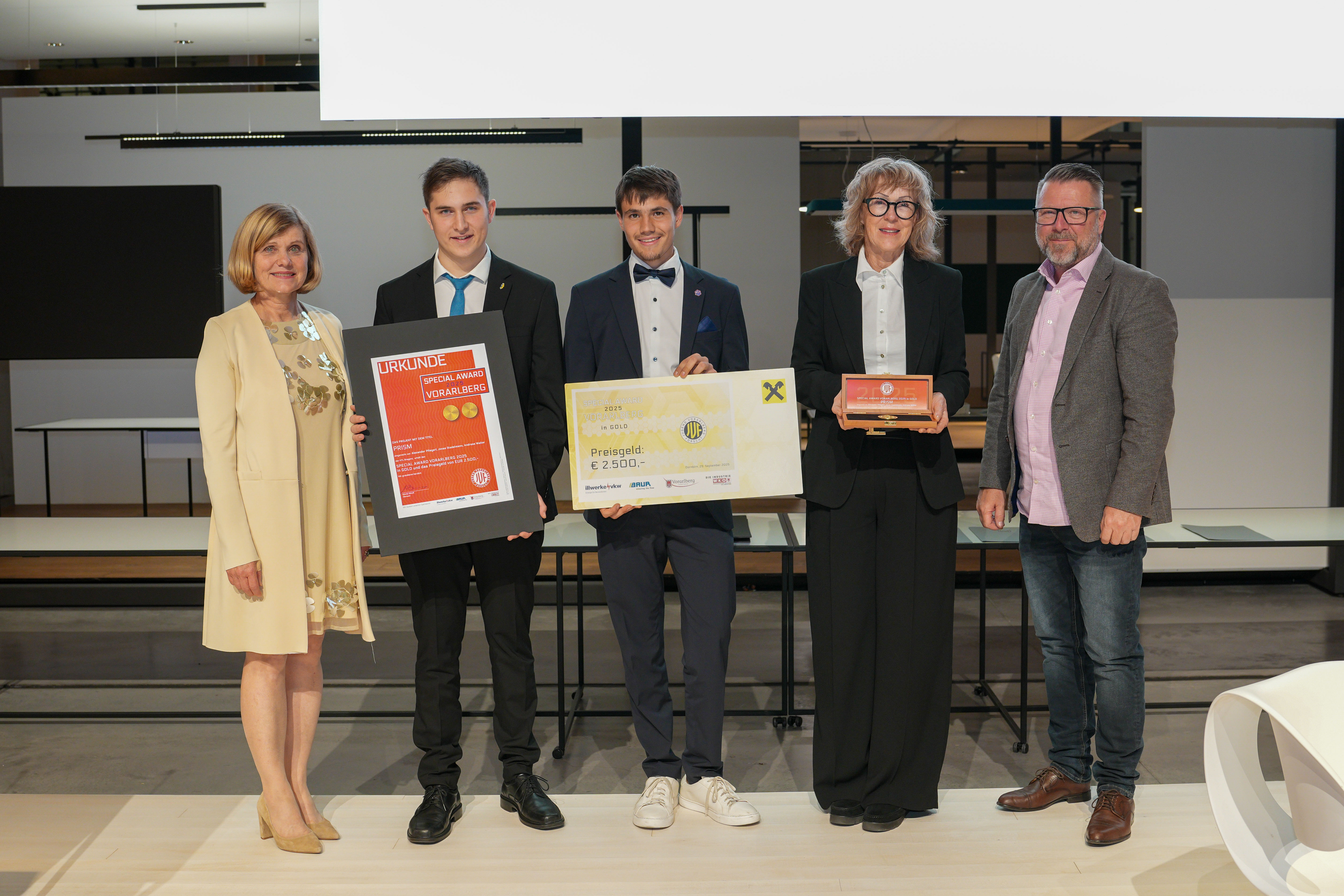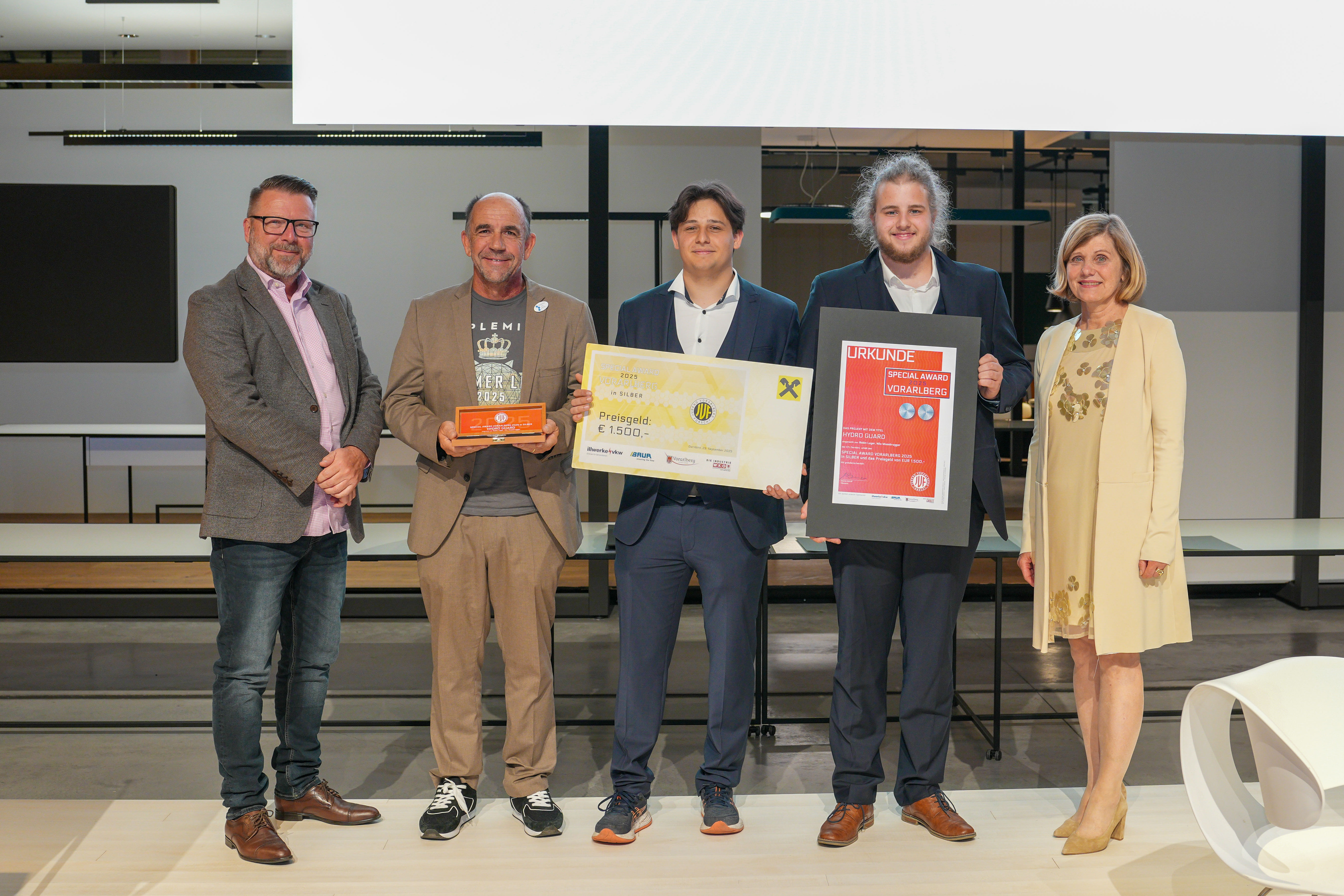 Der Verein „Jugend Vorarlberg forscht“ verleiht den SPECIAL AWARD VORARLBERG für herausragende Leistungen in den Bereichen Energie- und Elektrotechnik, Umwelt und Nachhaltigkeit. Jährlich werden die kreativsten und innovativsten Ideen junger Talente aus Vorarlberg prämiert.
